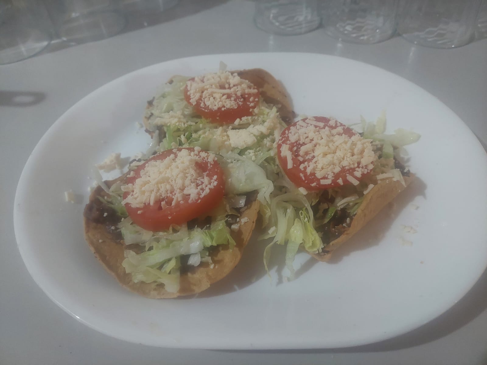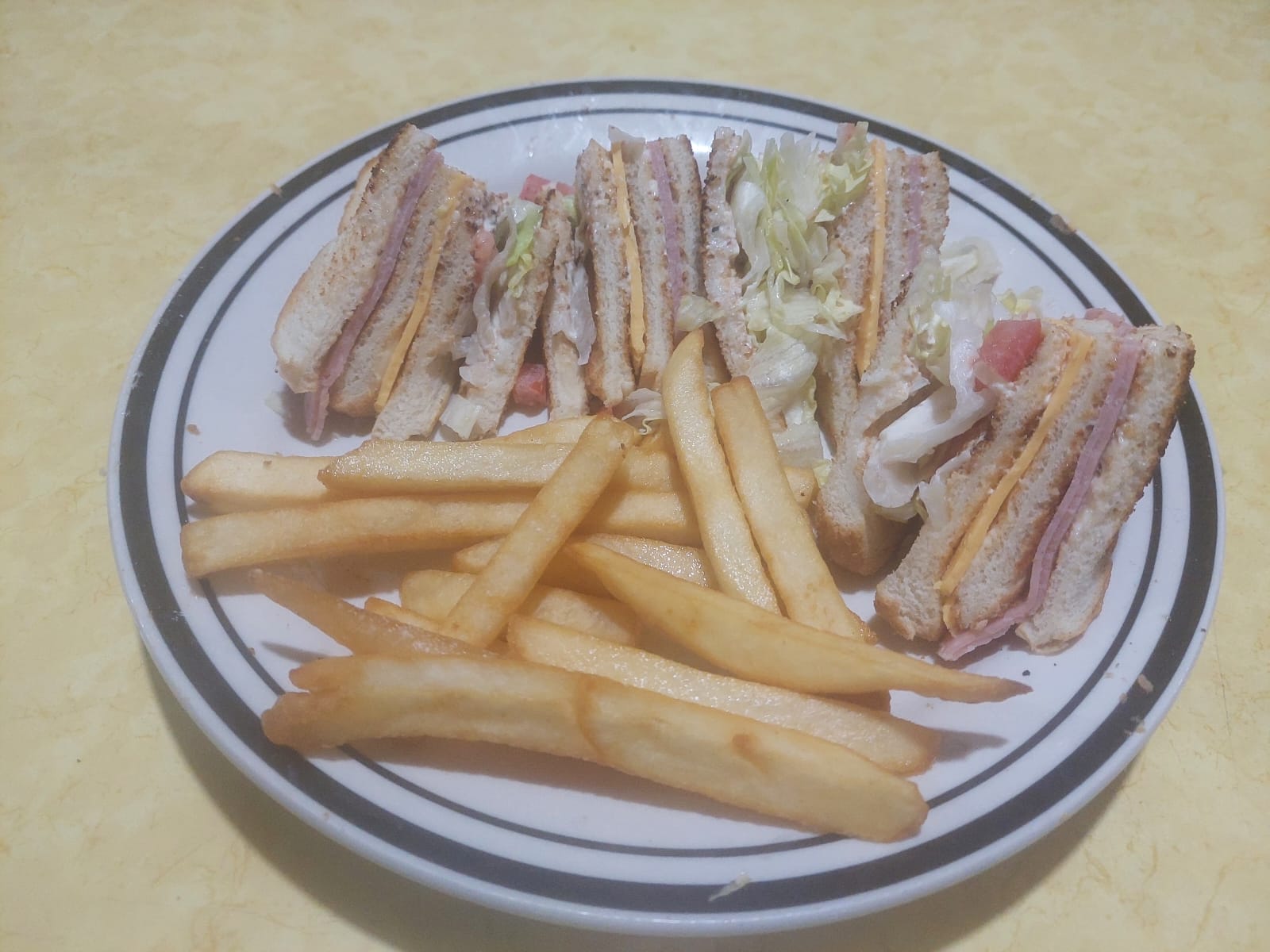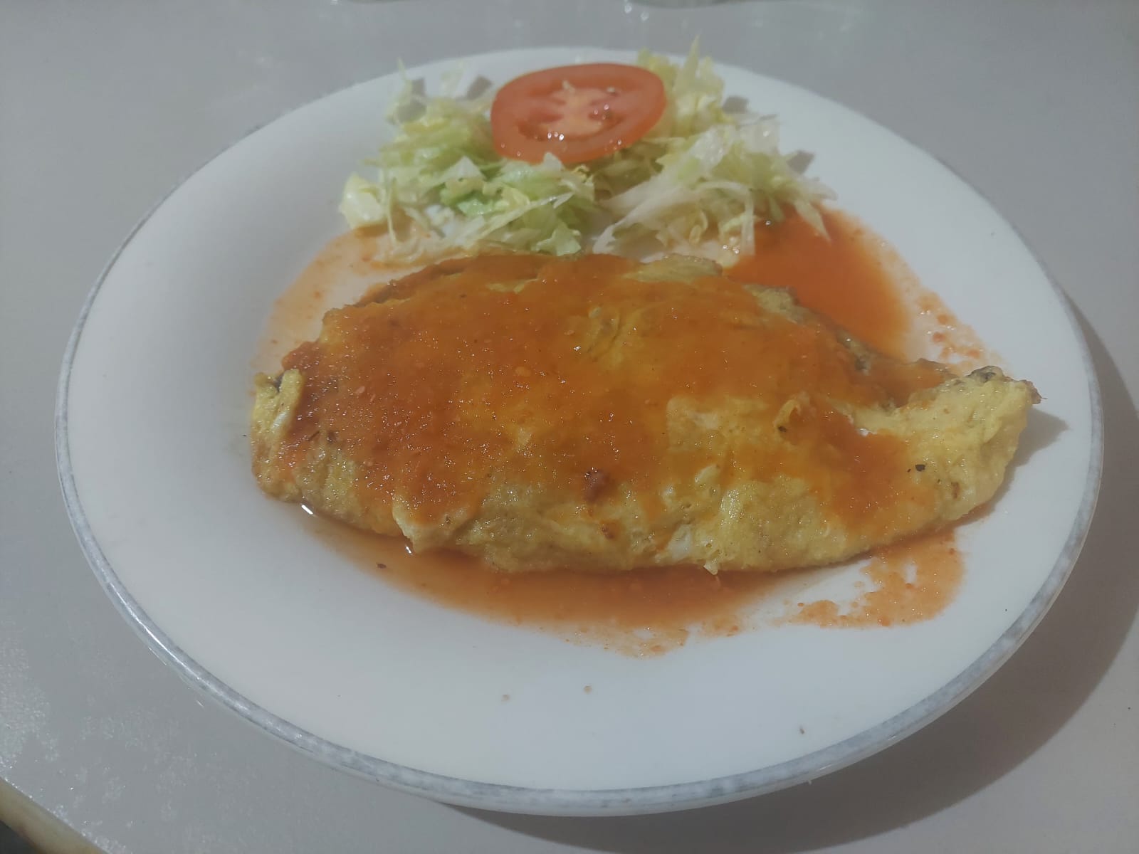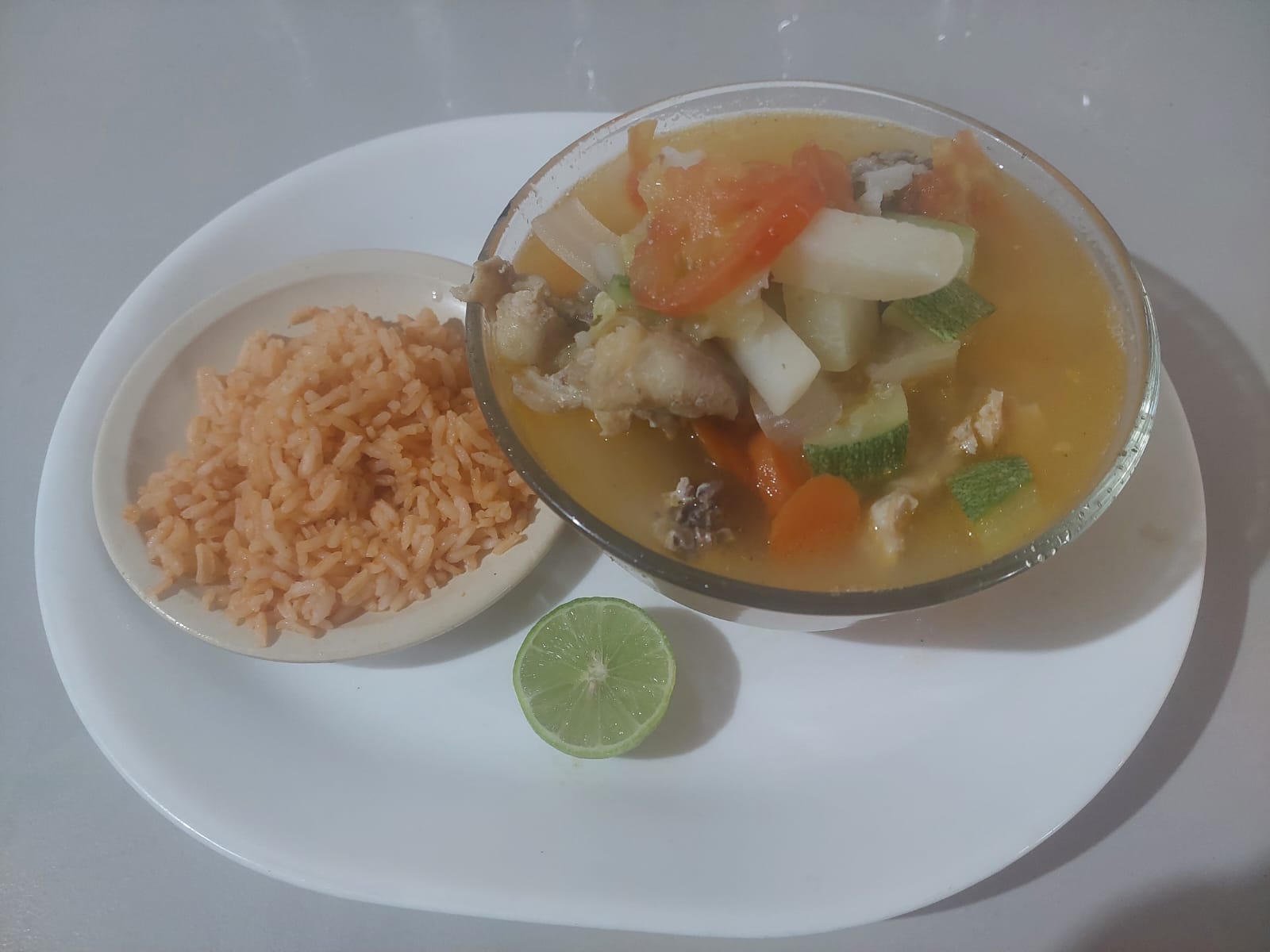 Acompañada con frijoles, arroz, verdura y papas fritas.