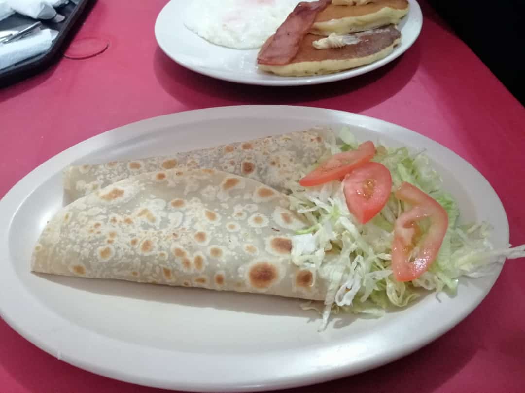 Tortillas de Harina con Frijoles y Queso*1 + Tortillas de Harina con Pollo o con Deshebrada*1 + Tortilla de Harina Bistec*1 + Café*1