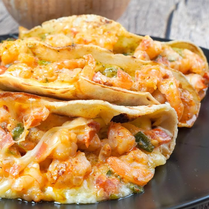 4 tacos de maiz en la salsa de camaron estilo gobernador