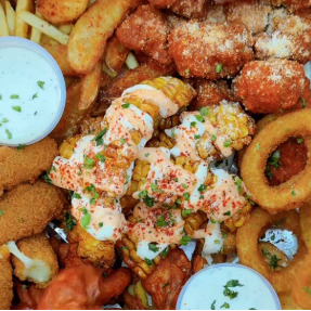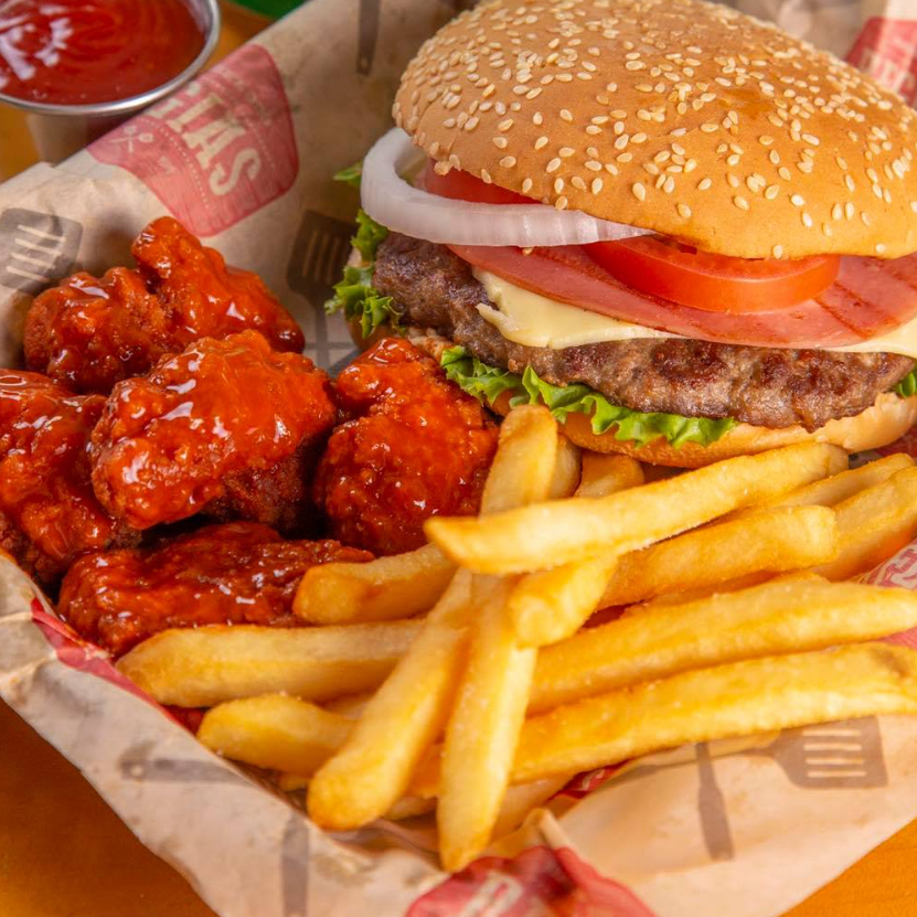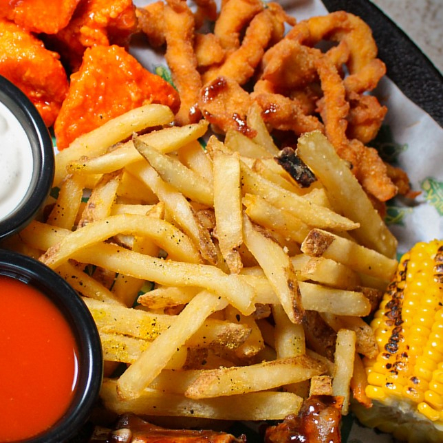 Alitas, Boneless, Aros de cebolla y costilla elote