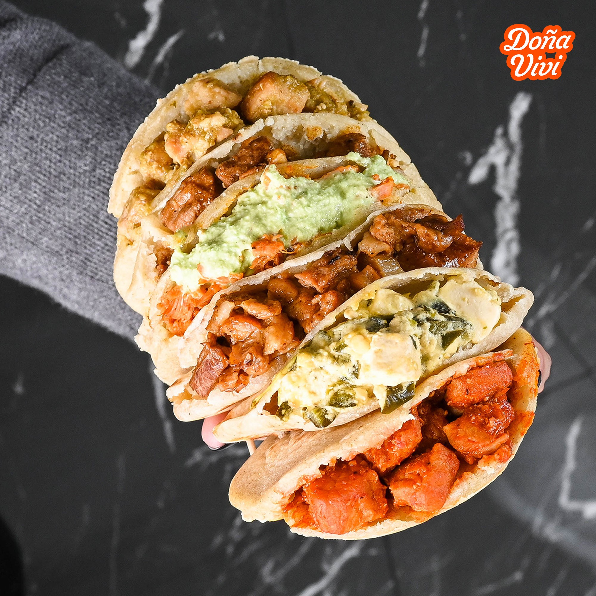 Taco de maíz recién hecho con opción de elegir 1 guiso favorito. Puedes añadir extras.