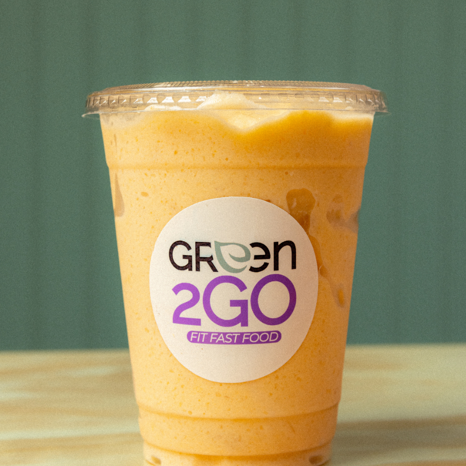 Piña, yogurth griego y leche de coco.