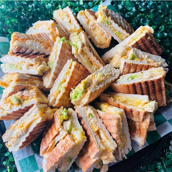 Charola con 5 paninis (20 piezas). Complemento a elegir: ensalada o pasta de tornillos.
