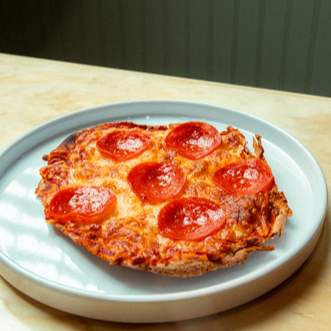 Pan Pita, salsa de tomate tipo italiana, pepperoni, queso mozarella