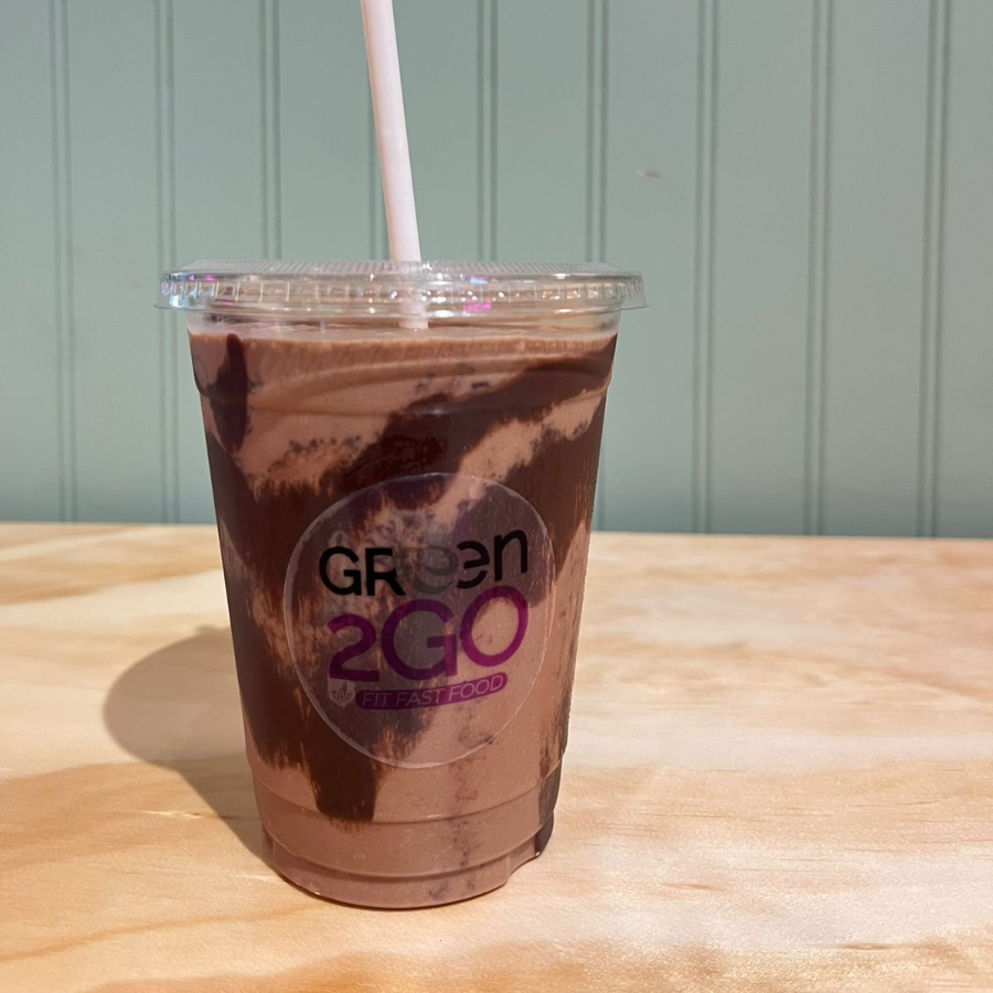 Platano, cocoa, crema de mani y leche de almendras.