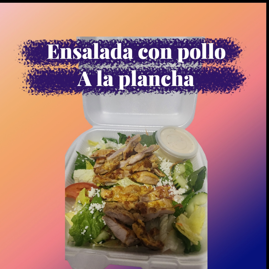 Ensalada lechuga, tomate, pepino, queso, pollo a la plancha o empanizado con aderezo de chipotle
