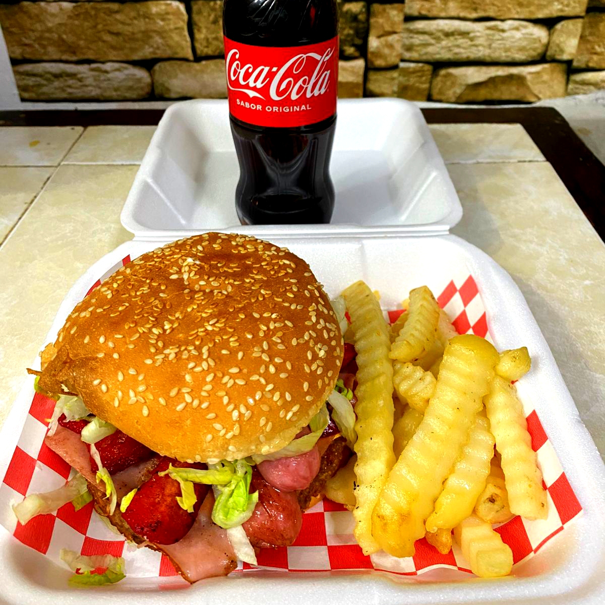 HAMBURGUESA CON PAPAS*1 + NUGGETS (10 piezas) CON PAPAS Y COCA*2