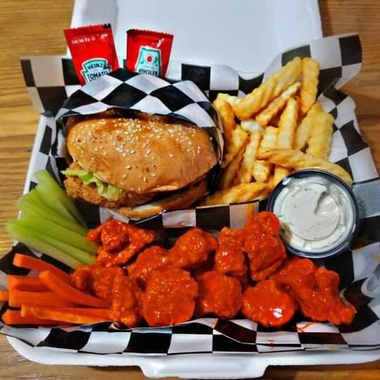 Hamburguesa con papas fritas y 5 boneless