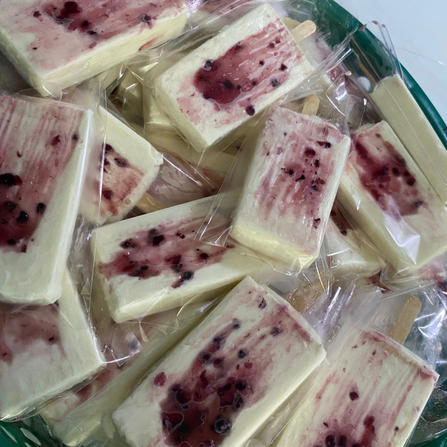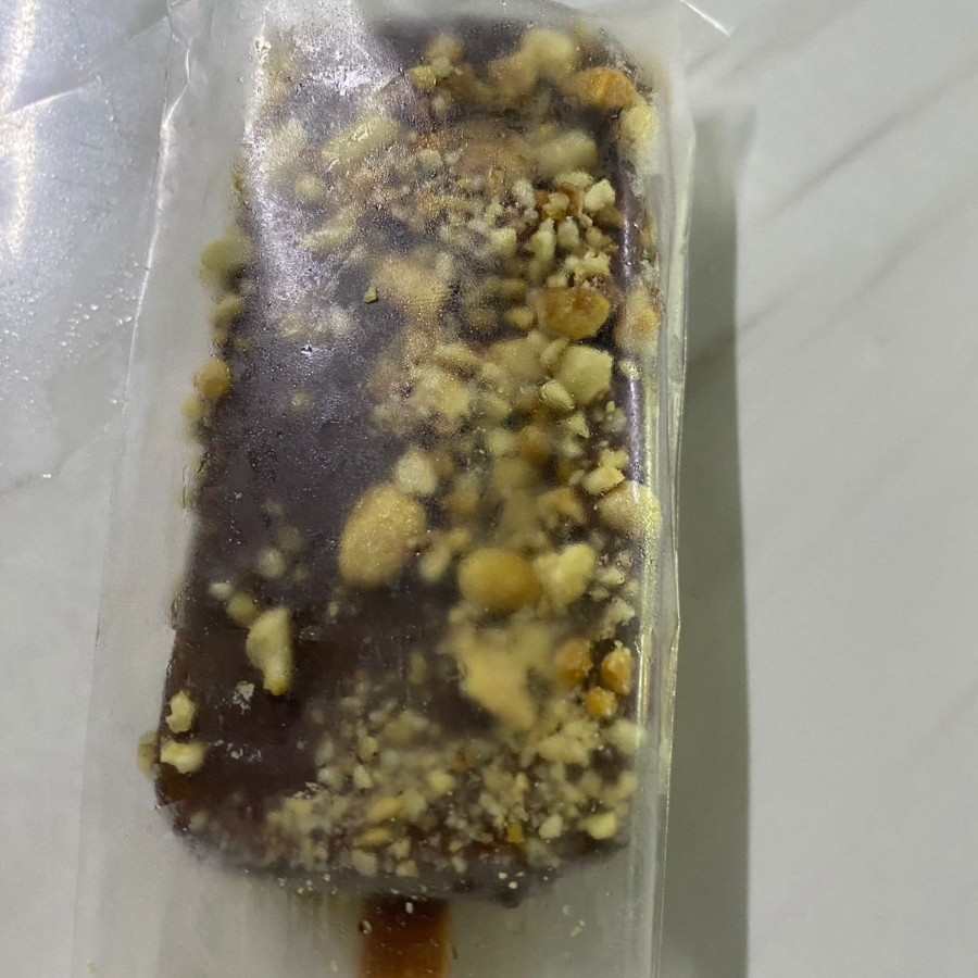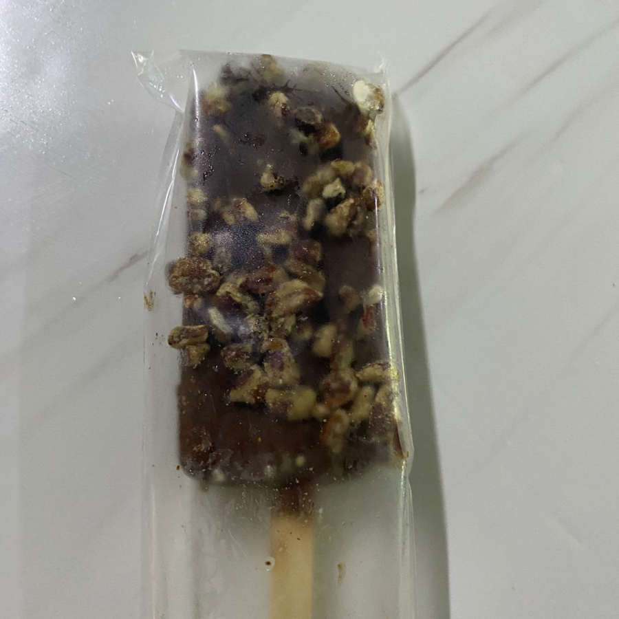 Paleta de leche con cobertura de chocolate y nuez