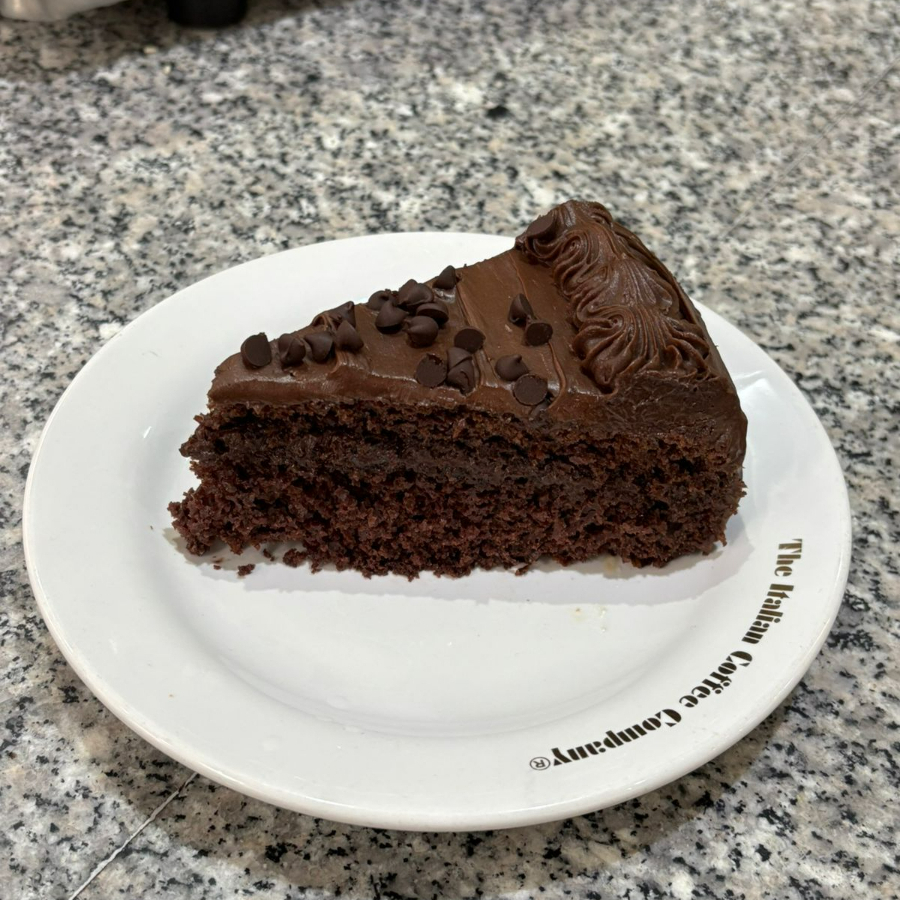 Pastel de chocolate relleno y cubierto de crema de doble chocolate.