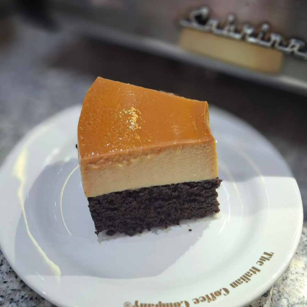 Pastel de chocolate combinado con suave flan.