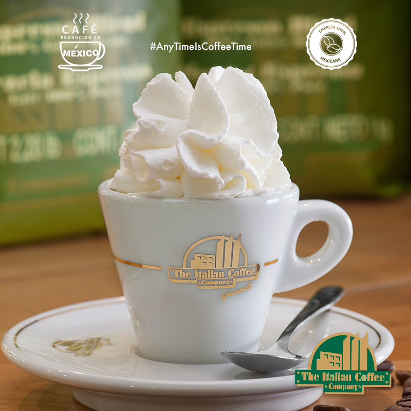 Una carga de café con cremosa y fresca panna.