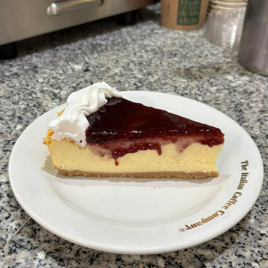 Base de galleta y queso con mermelada de zarzamora.