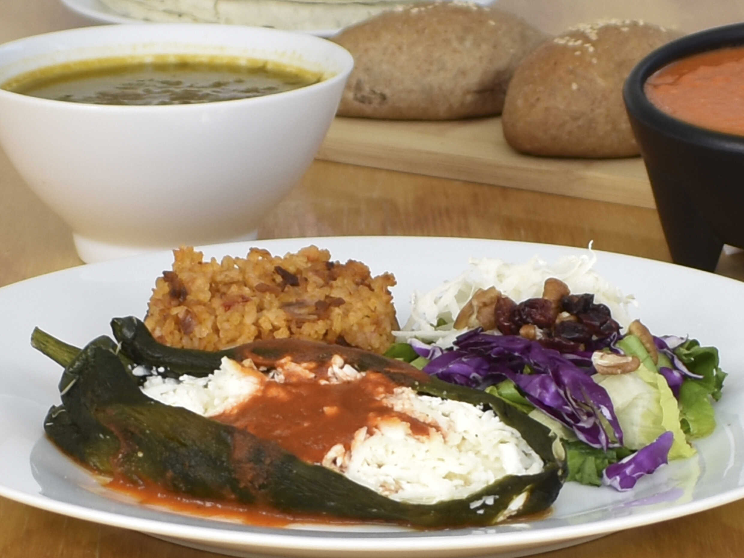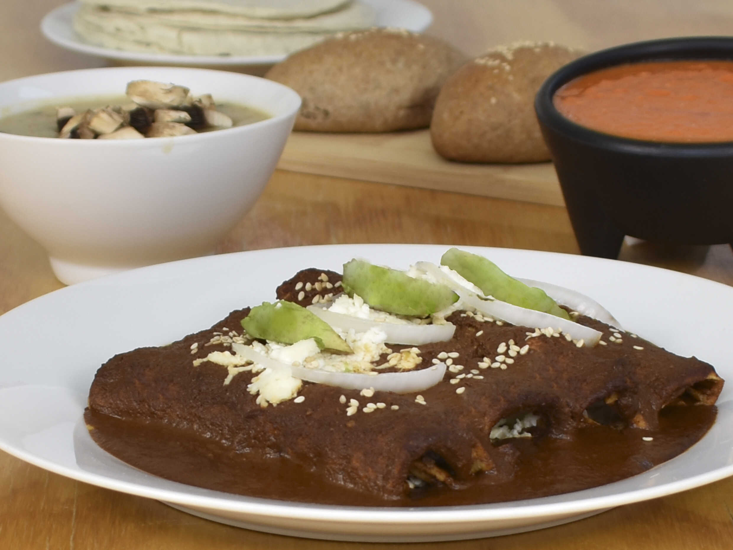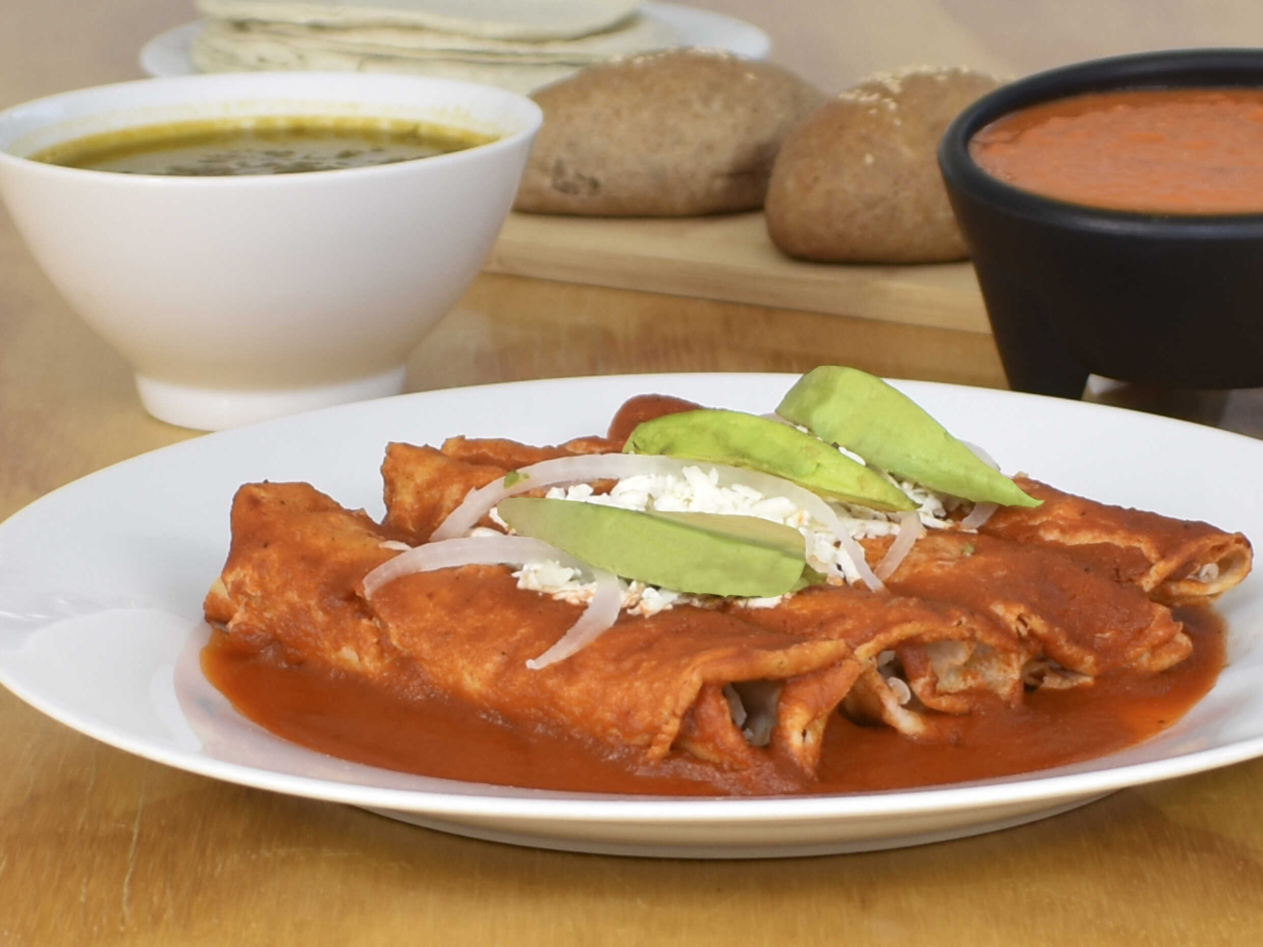 Entomatadas acompañadas de sopa o crema y agua del día.