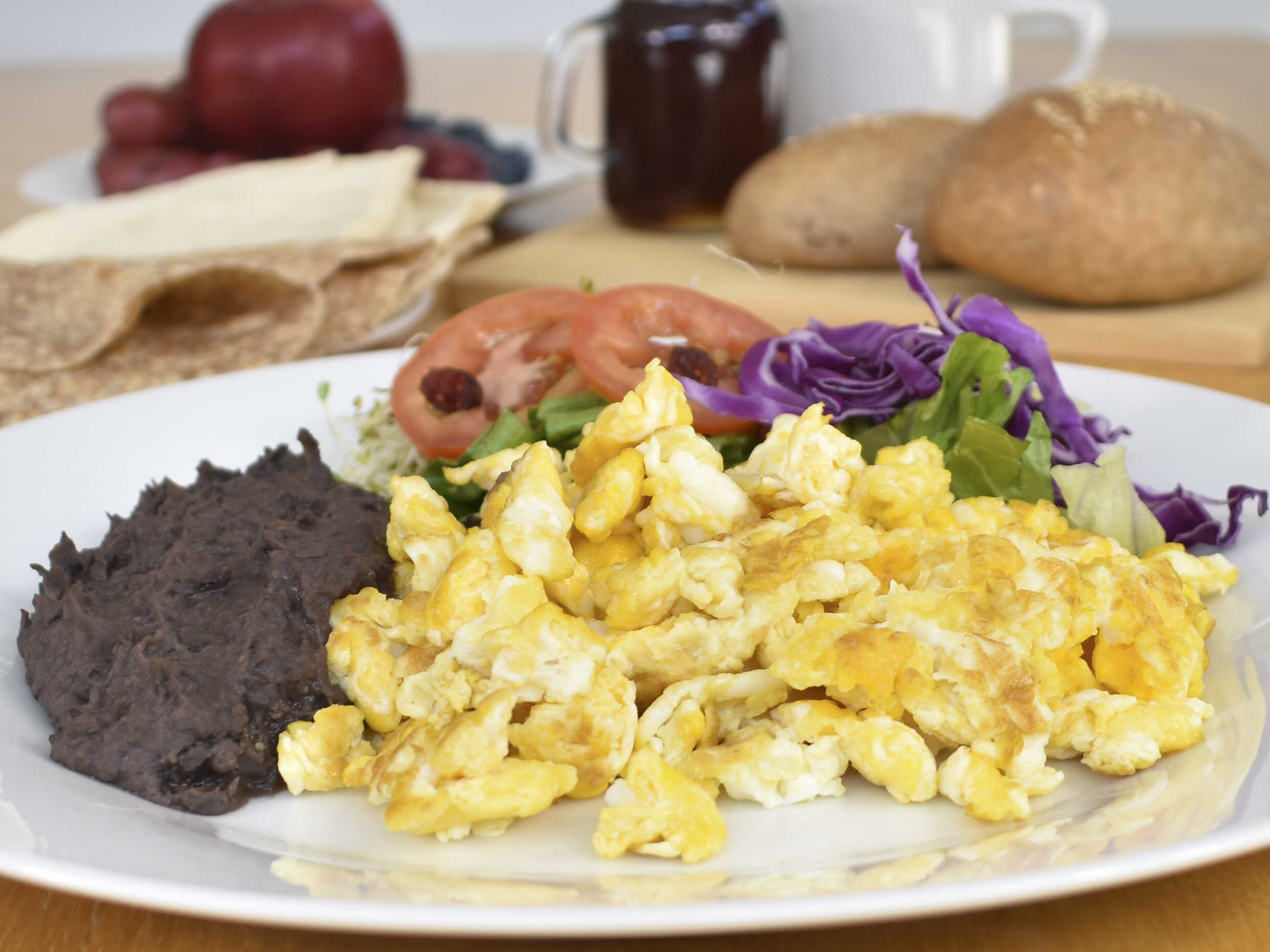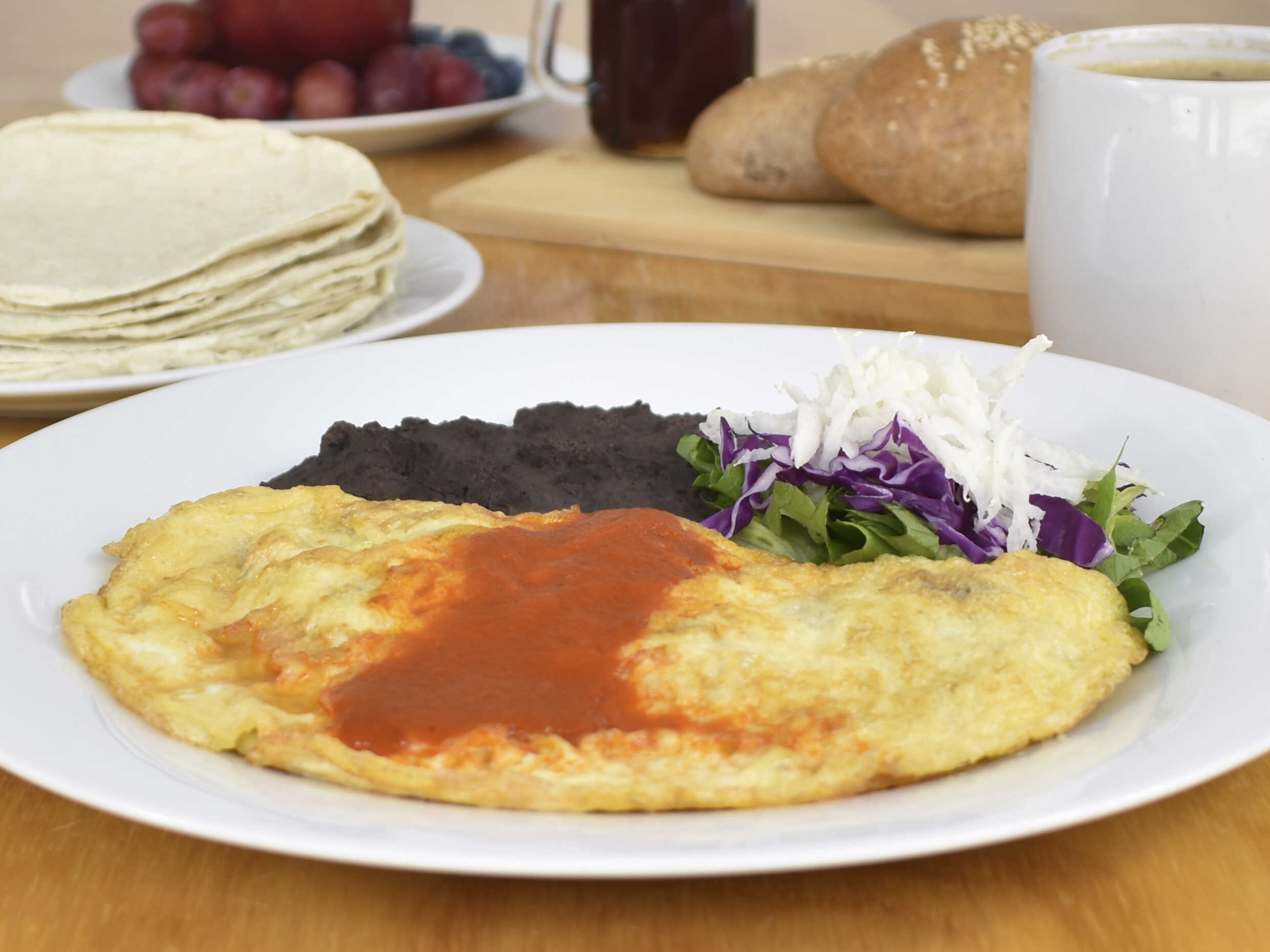 Acompañada de frijoles, arroz, ensalada, tortillas, salsa y aderezo.