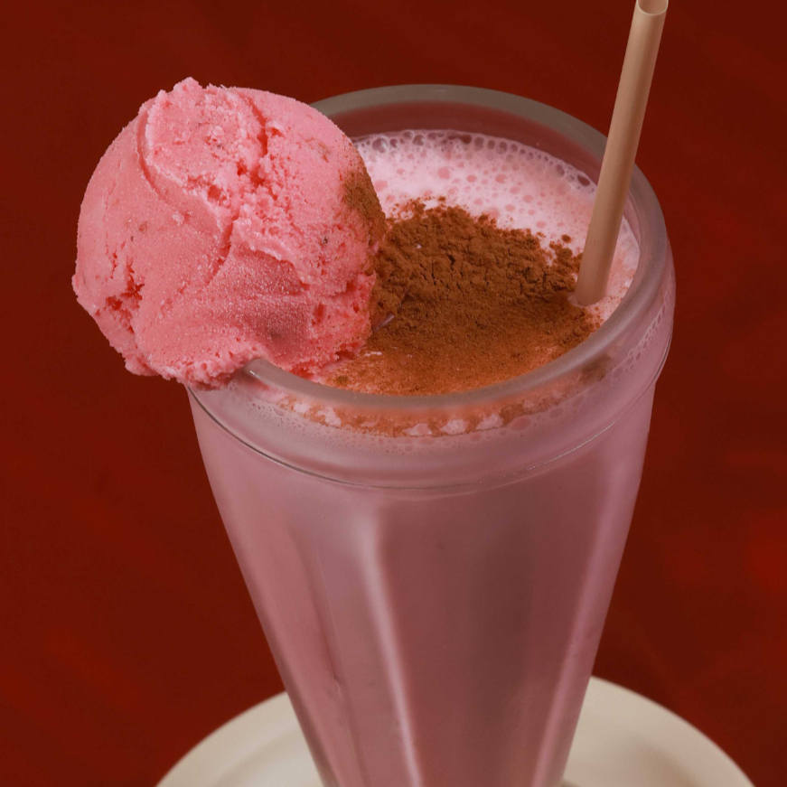 Malteada elaborada con leche ligth deslactosada al momento. La bola de nieve en la imagen en pedidos para llevar se agrega al momento de realizar la malteada....