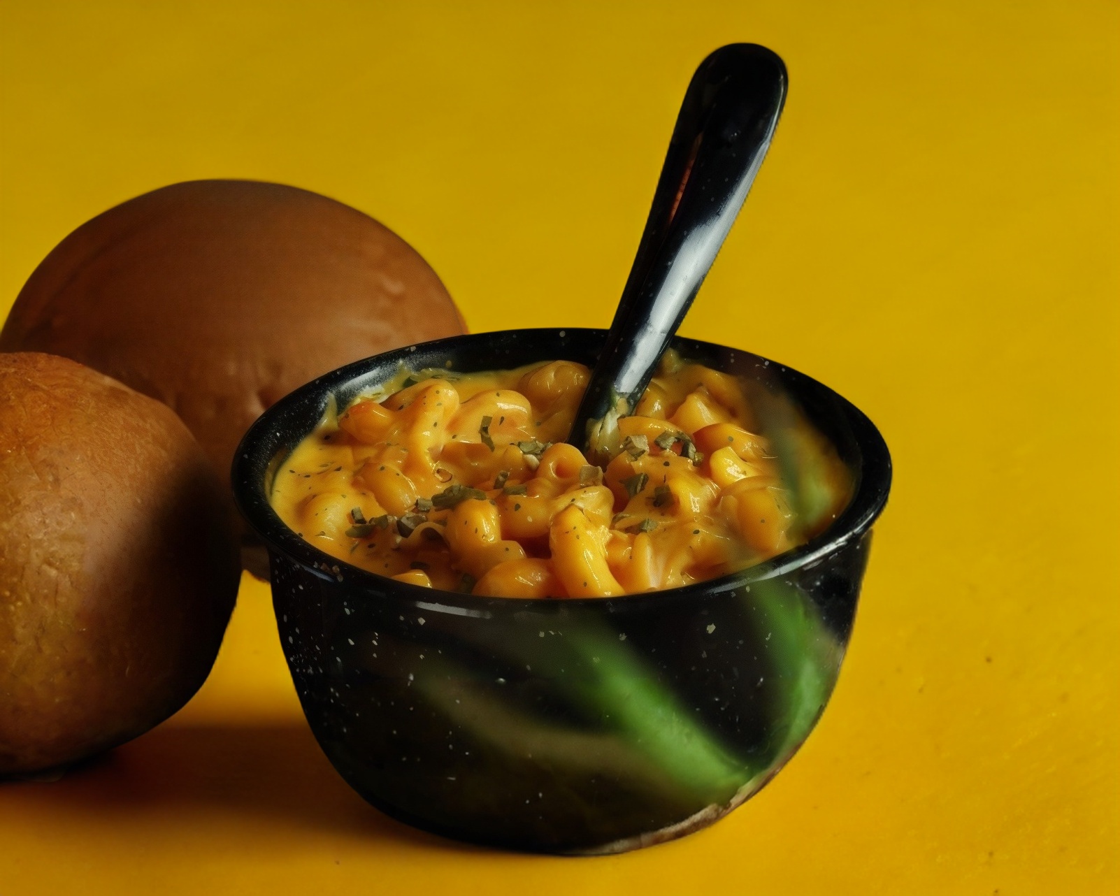 Sándwich de brisket ahumado, macarrones con queso, salsa BBQ, mayonesa de la casa, papas a la francesa, elote amarillo aderezo de chipotle, jalapeños y pepinillos.