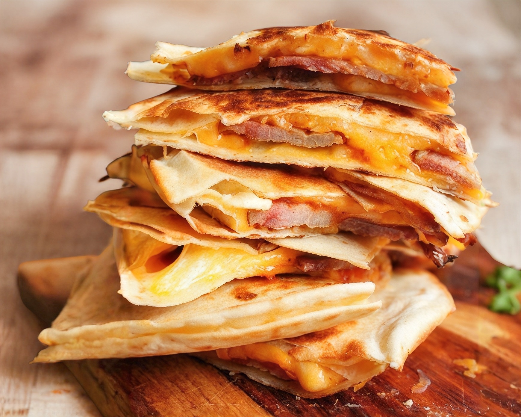 (4) quesadillas de brisket, ahumado, harina o maíz, cebolla, cilantro, salsa y limones.