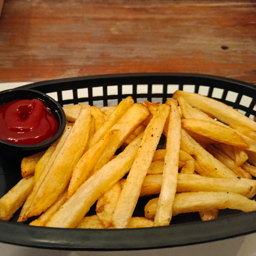 Papas fritas porcion personal con catsup.