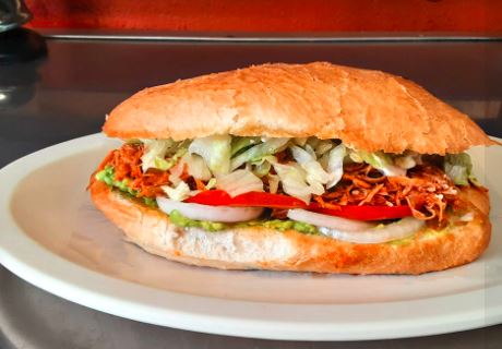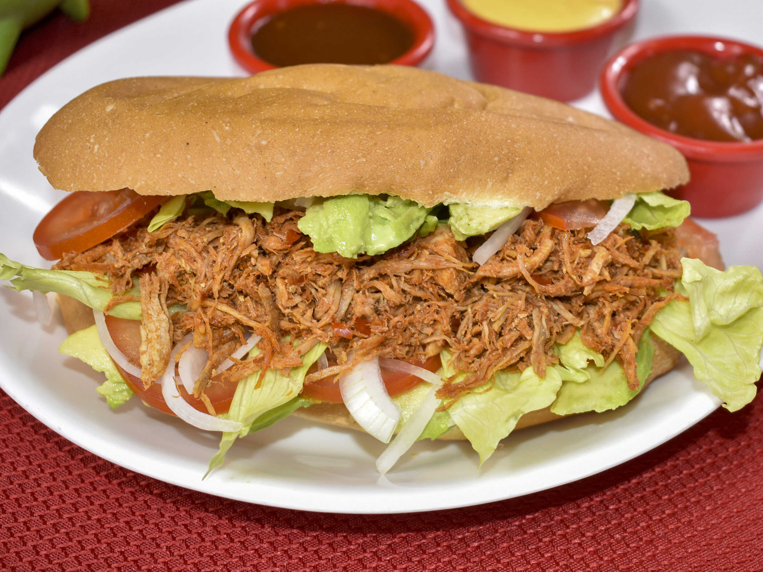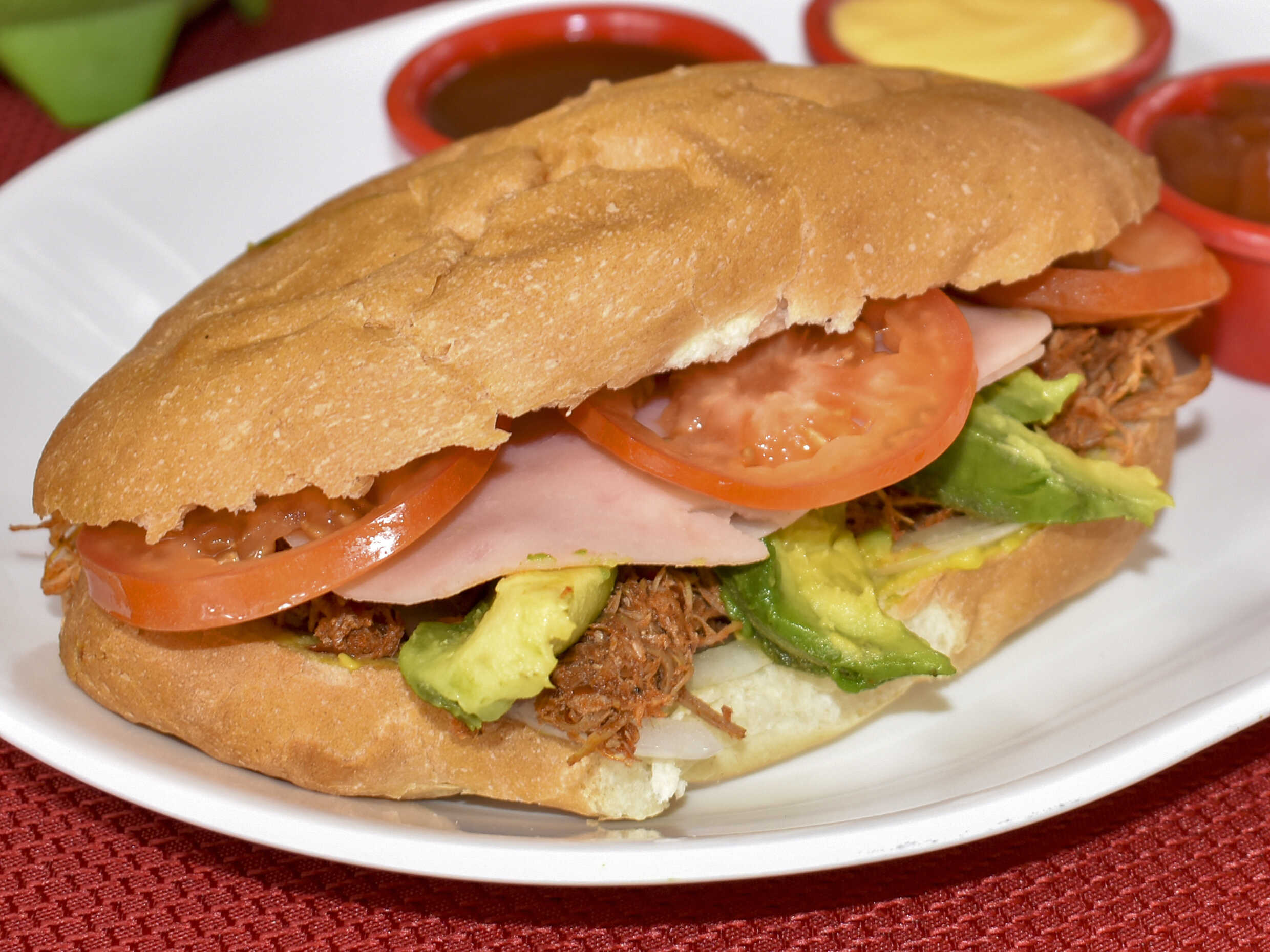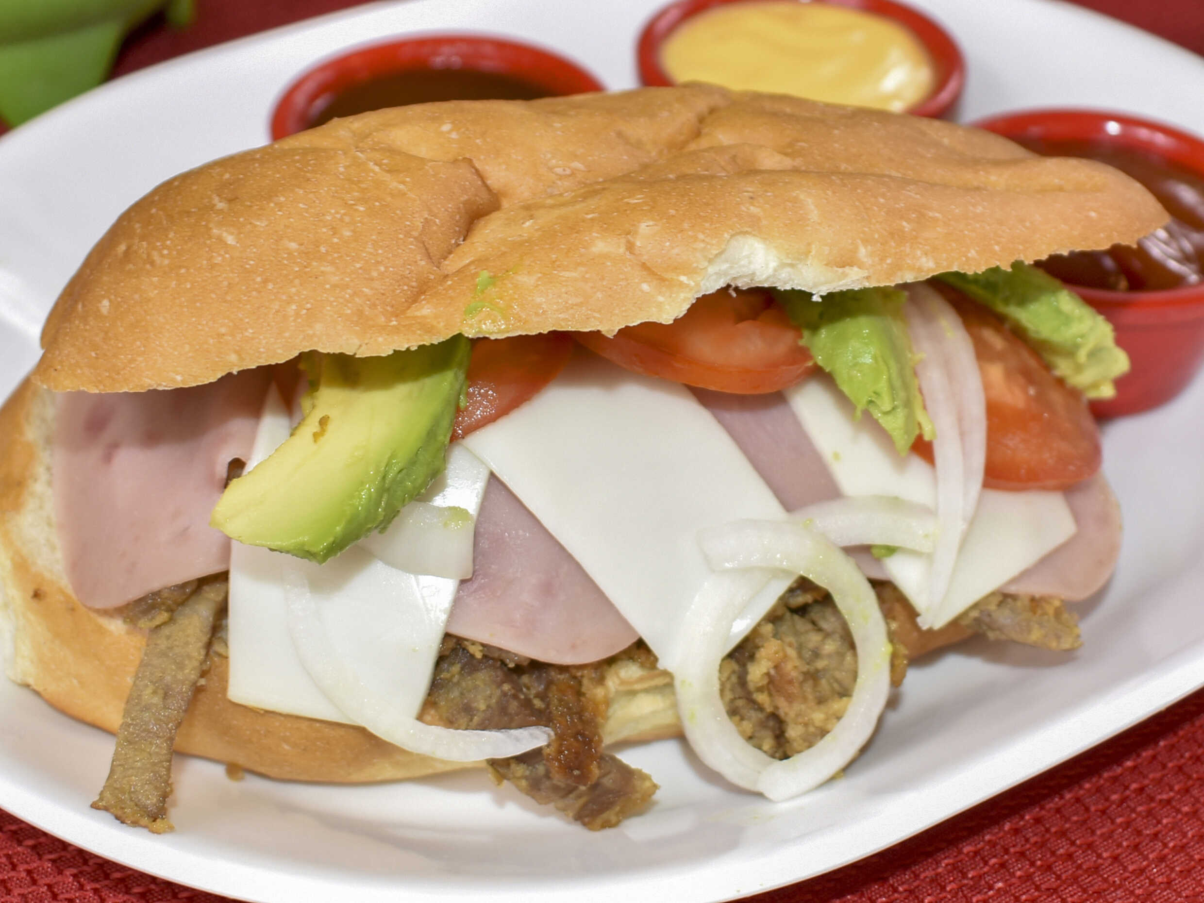 pierna, jamon, queso oaxaca queso amarillo, tomate cebolla aguacate