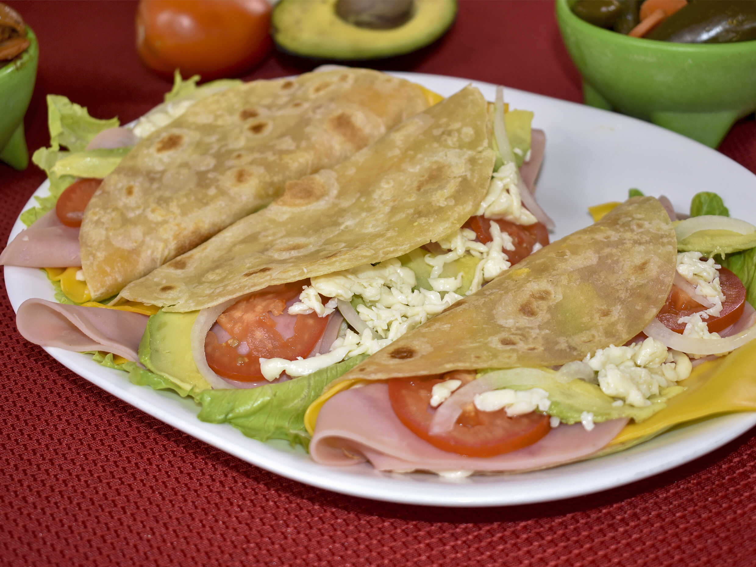 3 tortillas de harina jamon queso oaxaca y queso amarillo