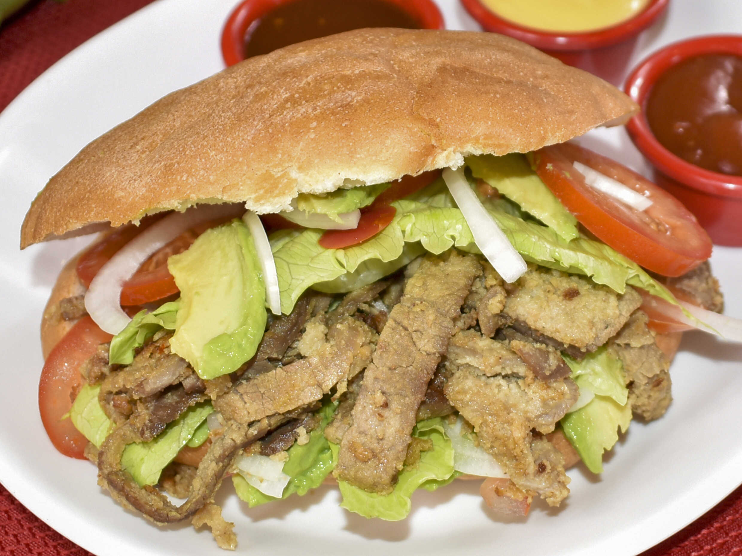 milanesa frijolitos refritos tomate cebolla aguacate y lechuga
