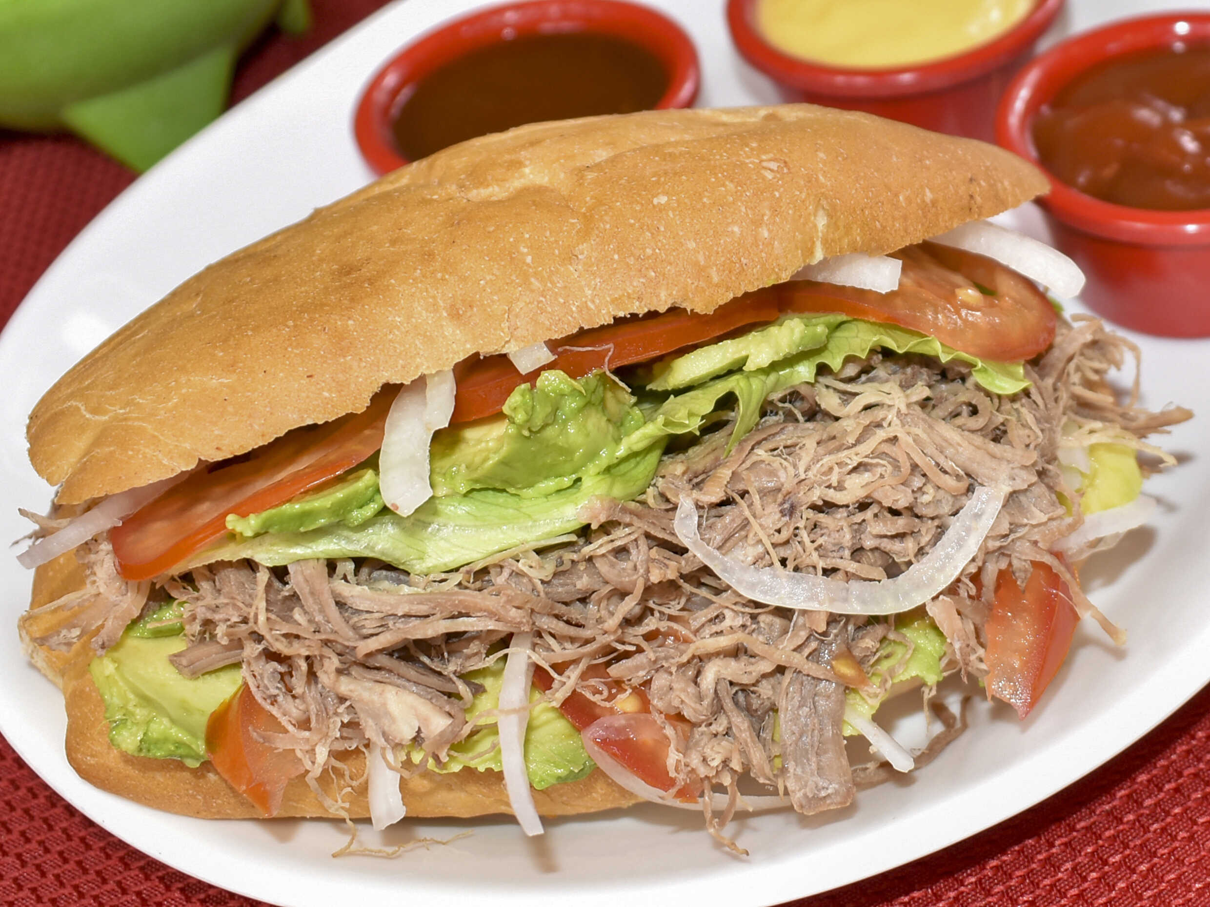desebrada, tomate cebolla aguacate y lechuga