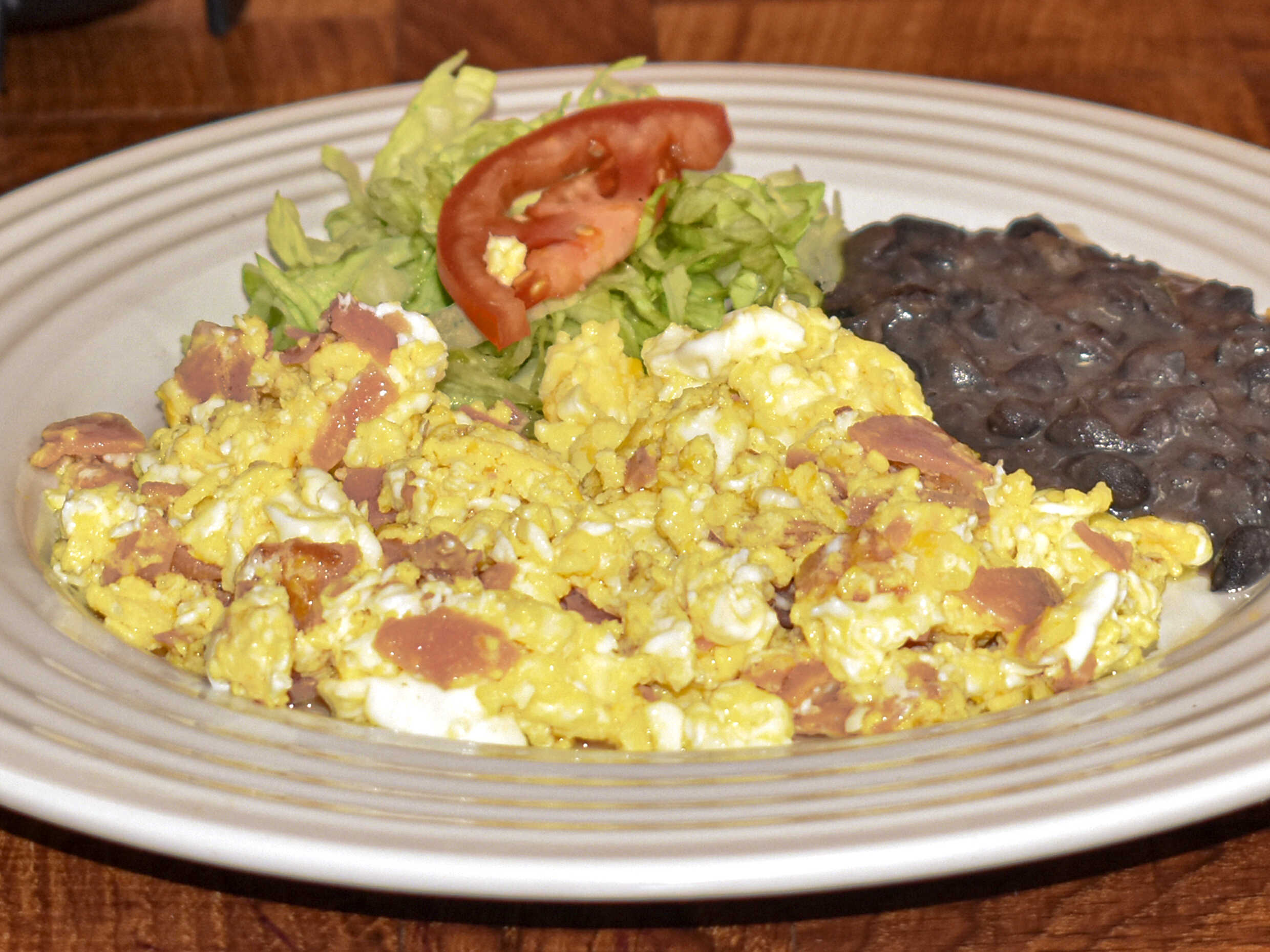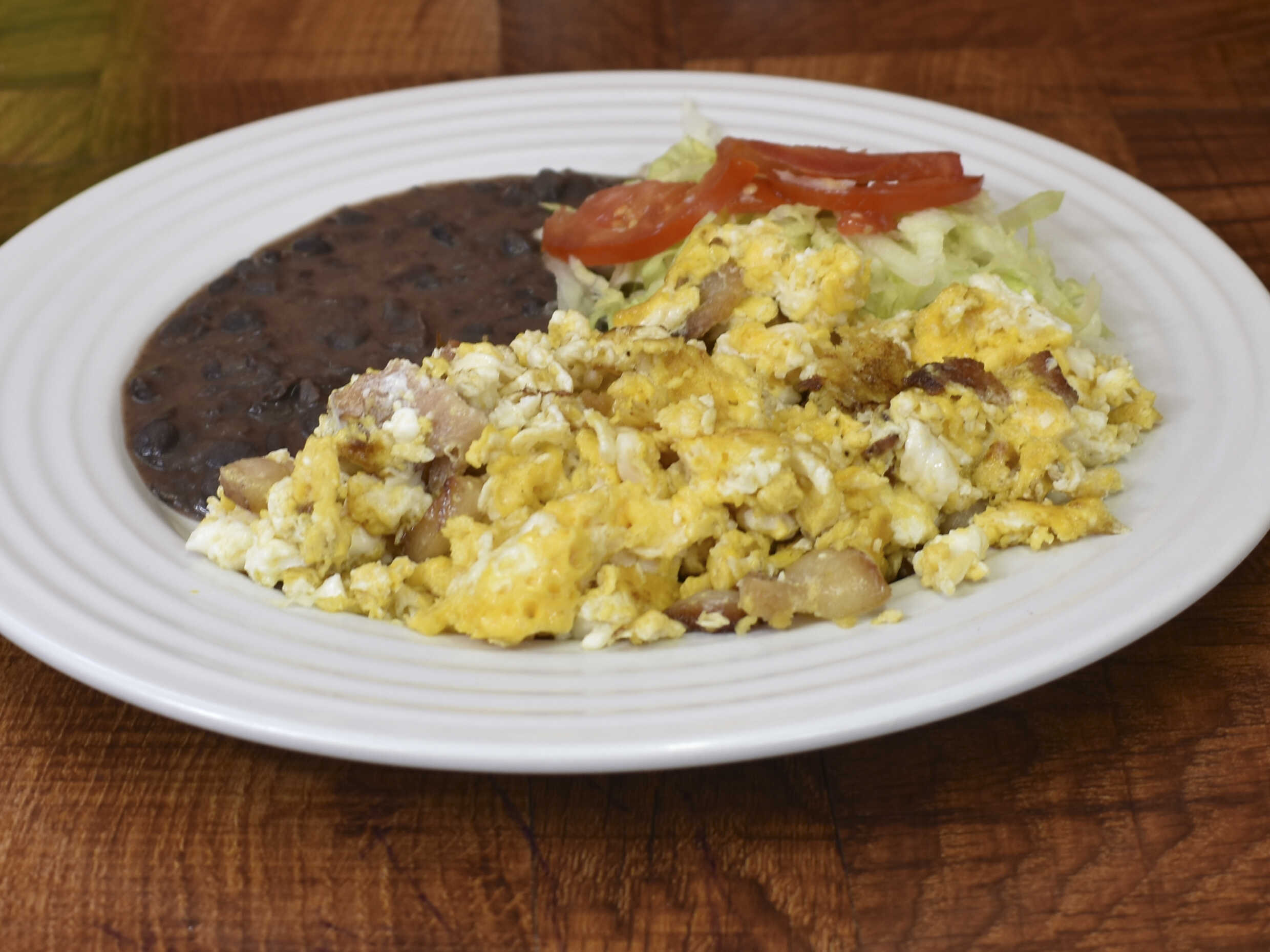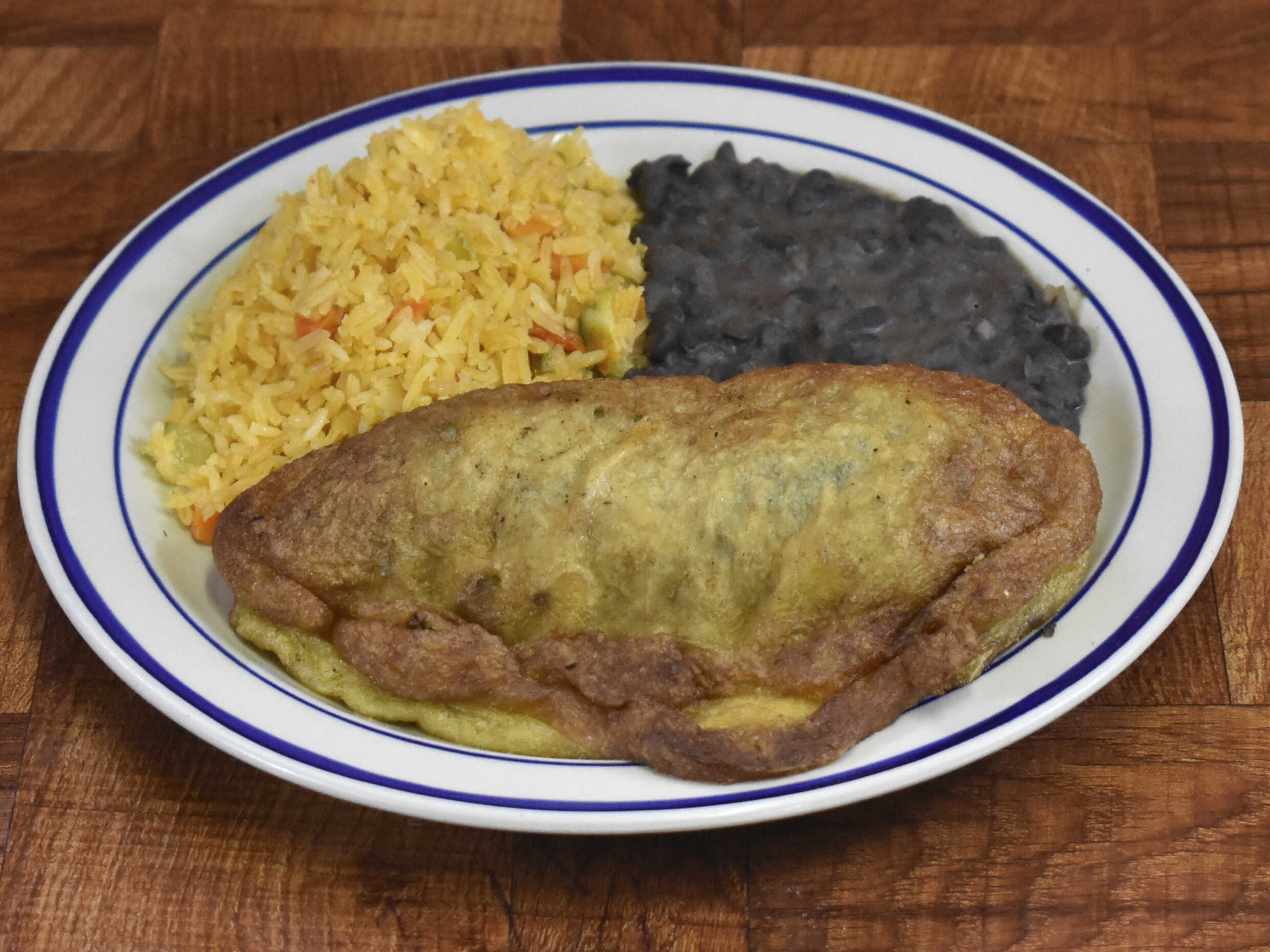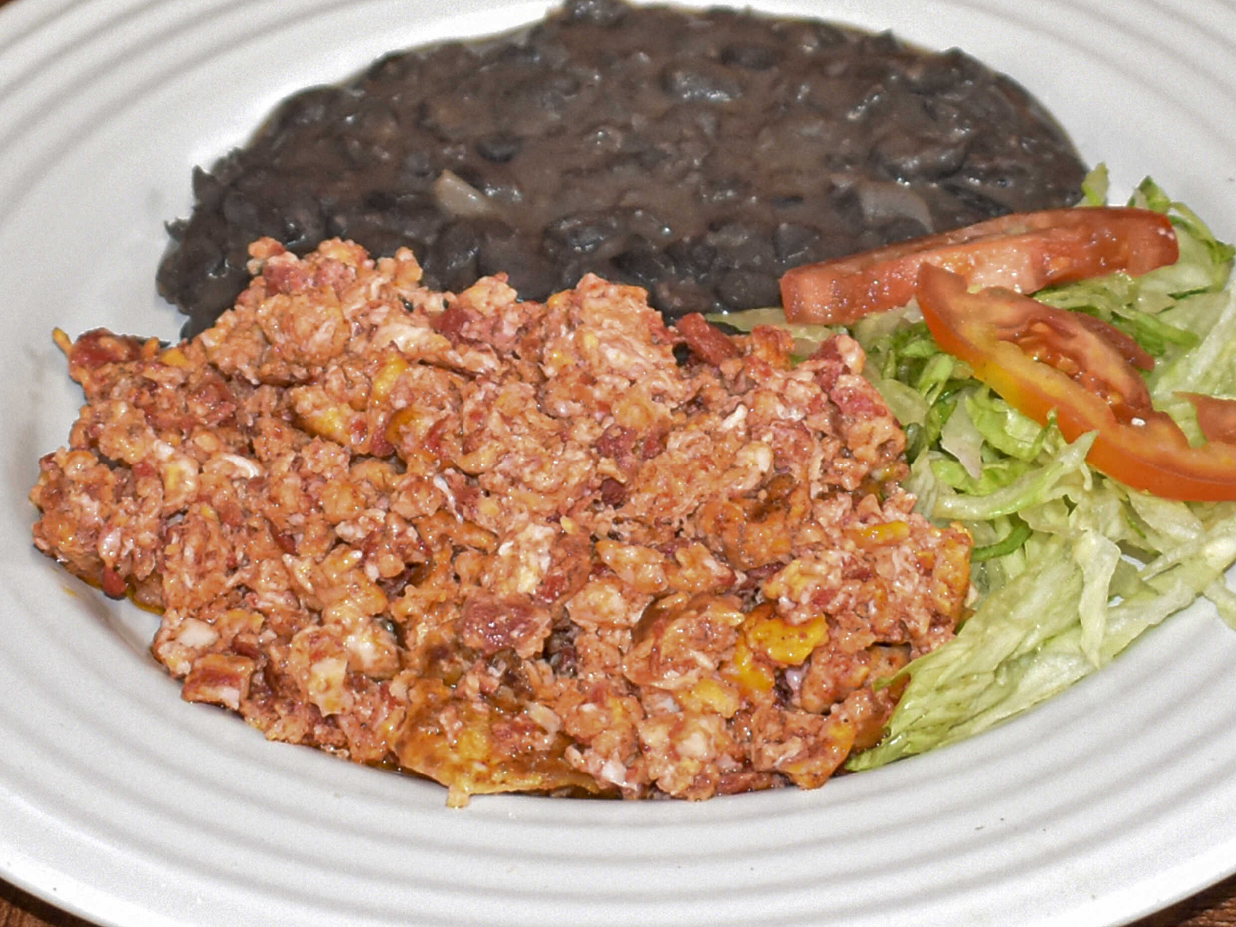 Incluye, frijoles, ensalada y tortillas de maíz.
