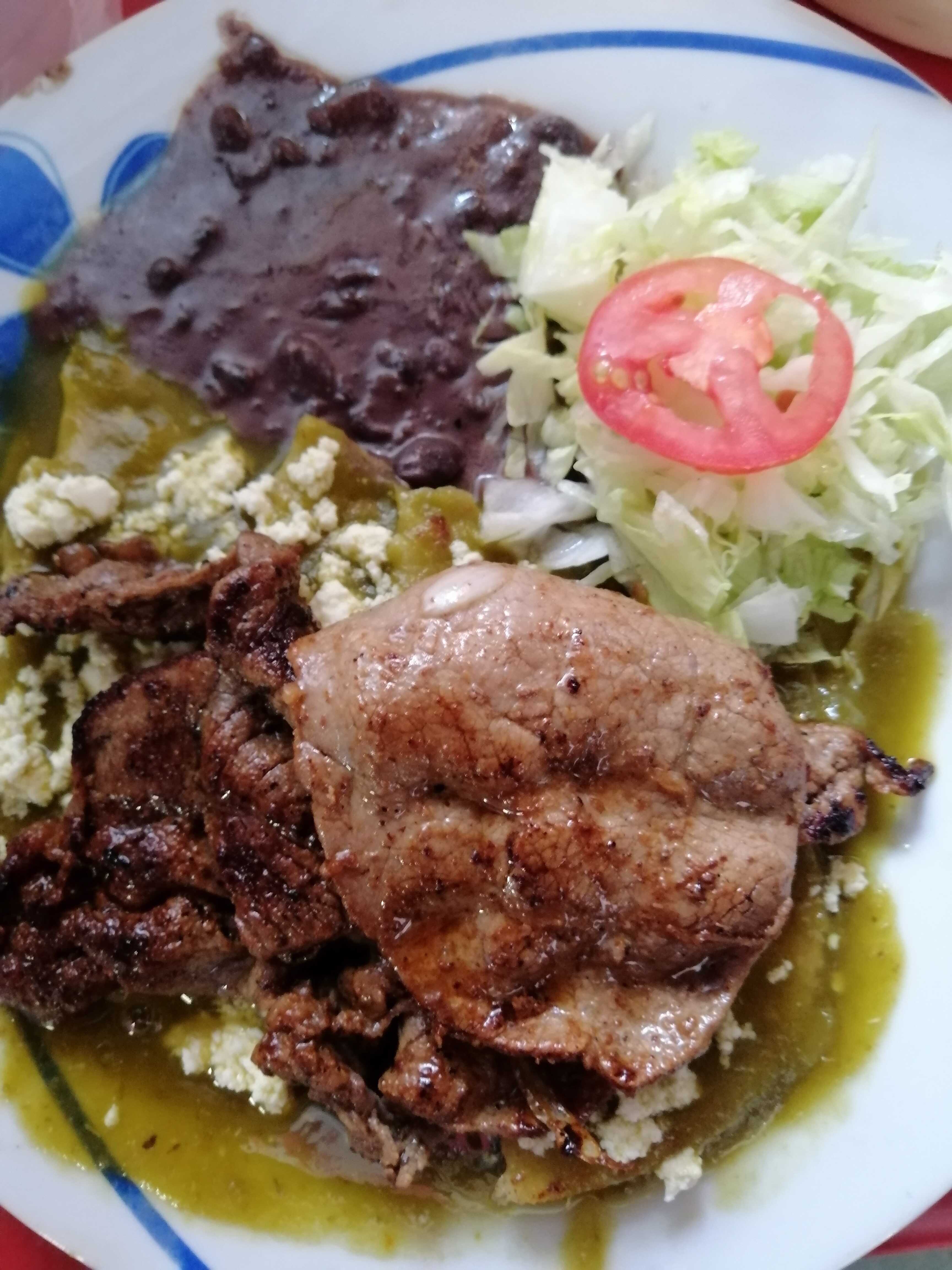 Enchiladas Verdes Picosas con Bistec y Papas Frita