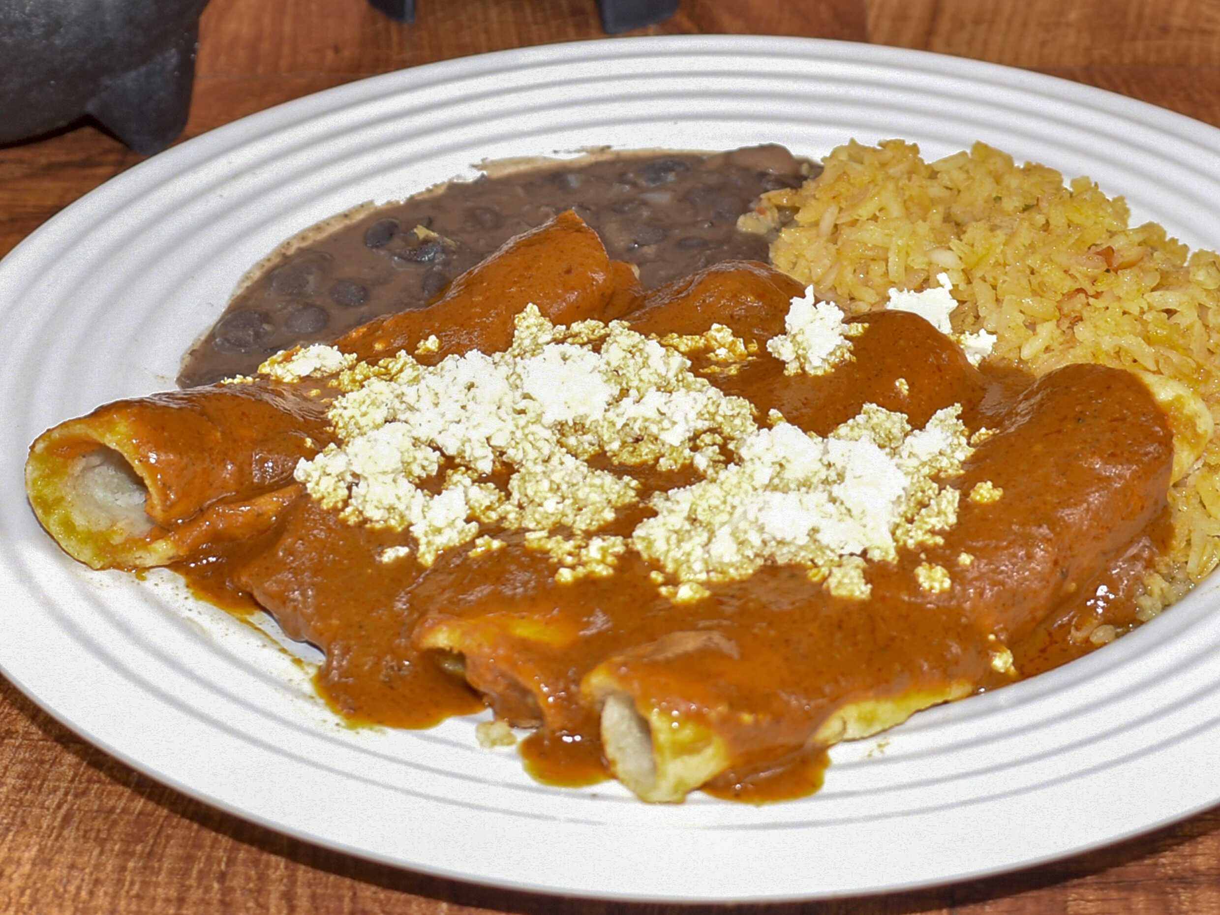 Enmoladas Gratinadas Rellenas de Pollo y Bistec