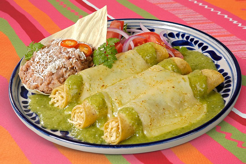 Enchiladas Suizas Rellenas de Pollo con Bistec