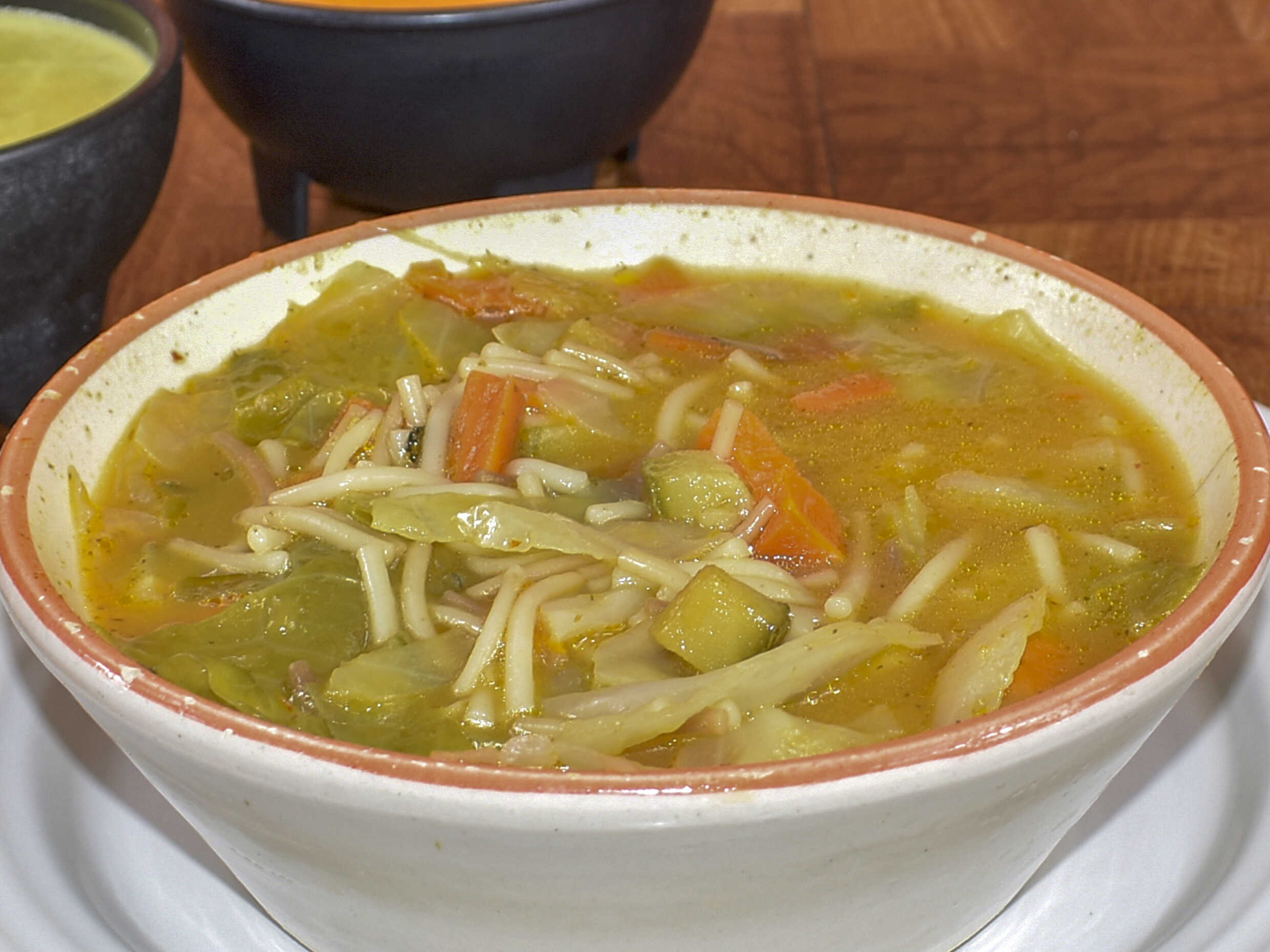 Arroz, ensalada de lechuga, sopita de fideo de 4 oz, tortillas recién echas y agua de fruta natural.