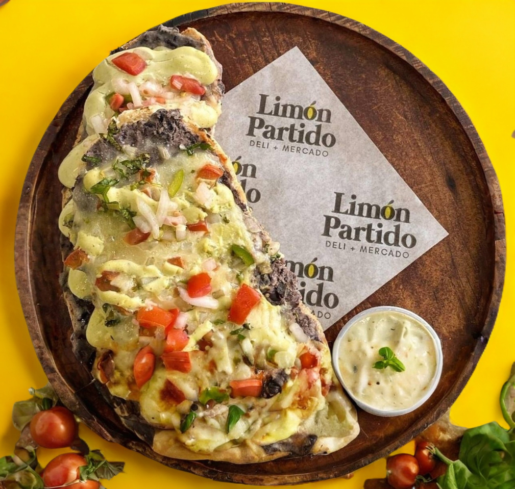 Pieza de baguette cortada a la mitad, las dos mitades colocar una cucharada de frijoles negros guisados, cucharada de queso chihuahua, 2 cucharaditas de pico de gallo y aderezo de avo en zic zac