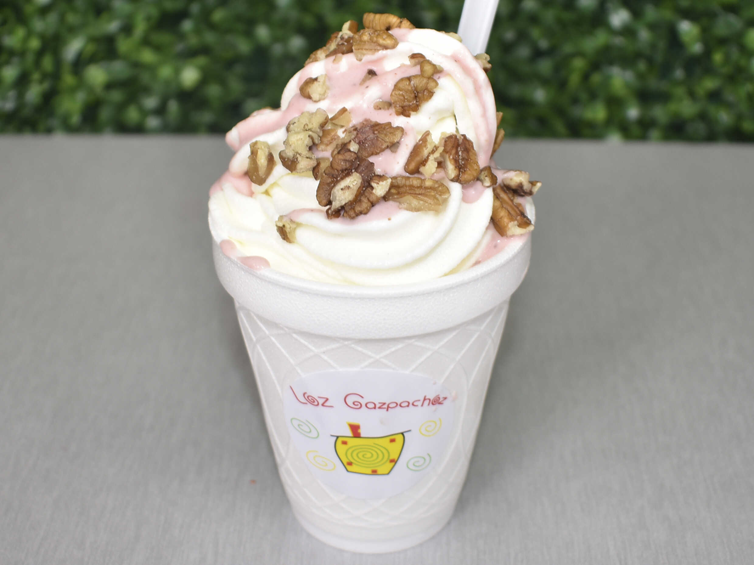 Nieve de yogurt preparada (Fresas con crema y nuez)