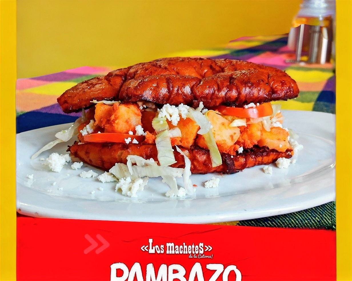 Machete de 40 cm, un guisado a escoger, fríjoles y queso asadero