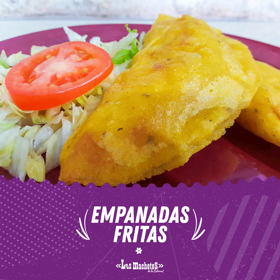 Empanada frita, rellena de un guiso y queso asadero.