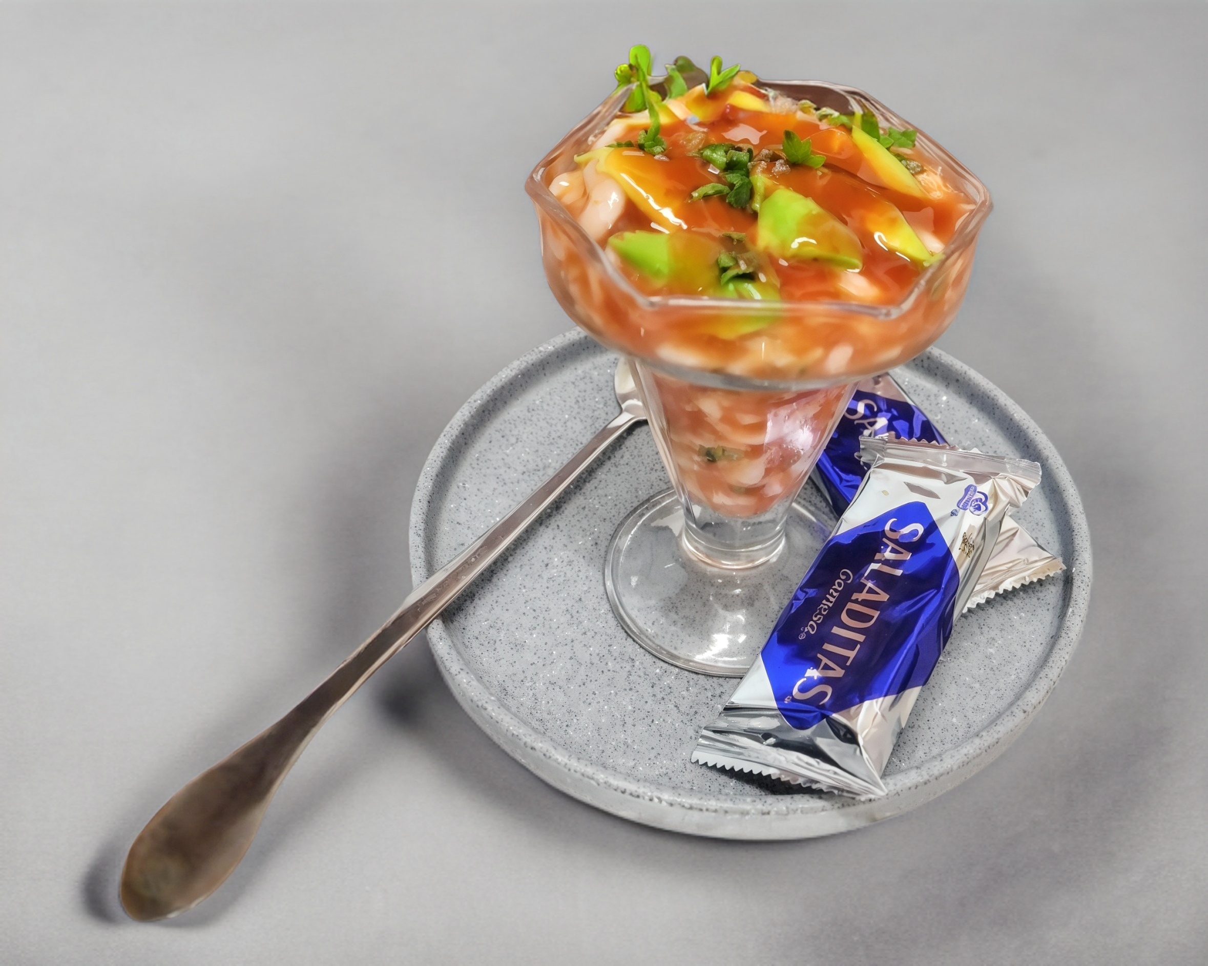 COCTEL DE CAMARON ACOMPAÑADO DE GALLETAS SALDAS
