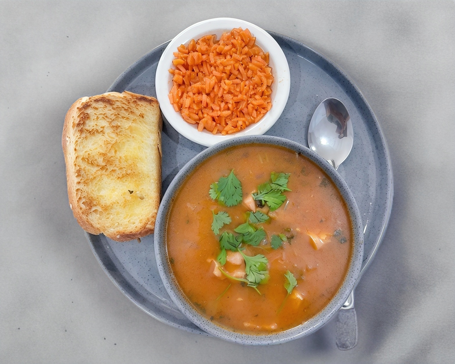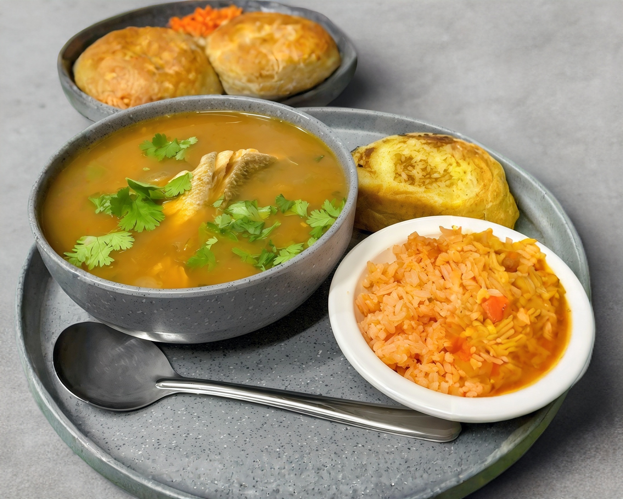 ORDEN DE 500 ML DE CALDO DE FILETE DE TRUCHA ACOMPAÑADO DE UNA PORCION DE ARROZ, PAN DE LA CASA Y TOTOPOS