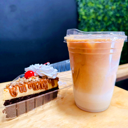Vive la experiencia de disfrutar una deliciosa y refrescante bebida de café con leche, servida fría, agregando alguno de nuestros sabores que harán una diferencia de sabor irresistible, sabores; vainilla, chocolate, caramelo. Combinado con un cheescake de textura suave y cremosa hecho con queso Philadelphia, con cubierta de zarzamora y suave crema, un sabor que deleita a todos.