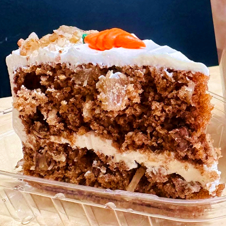 Deliciosa rebanada de nuestro pastel de zanahoria, irresistible que combina la dulzura natural de la zanahoria con la textura suave del bizcocho y el toque crujiente de las nueces. La mezcla de sabores que lleva su mezcla hace que tengas una fiesta de sabores en tu paladar.