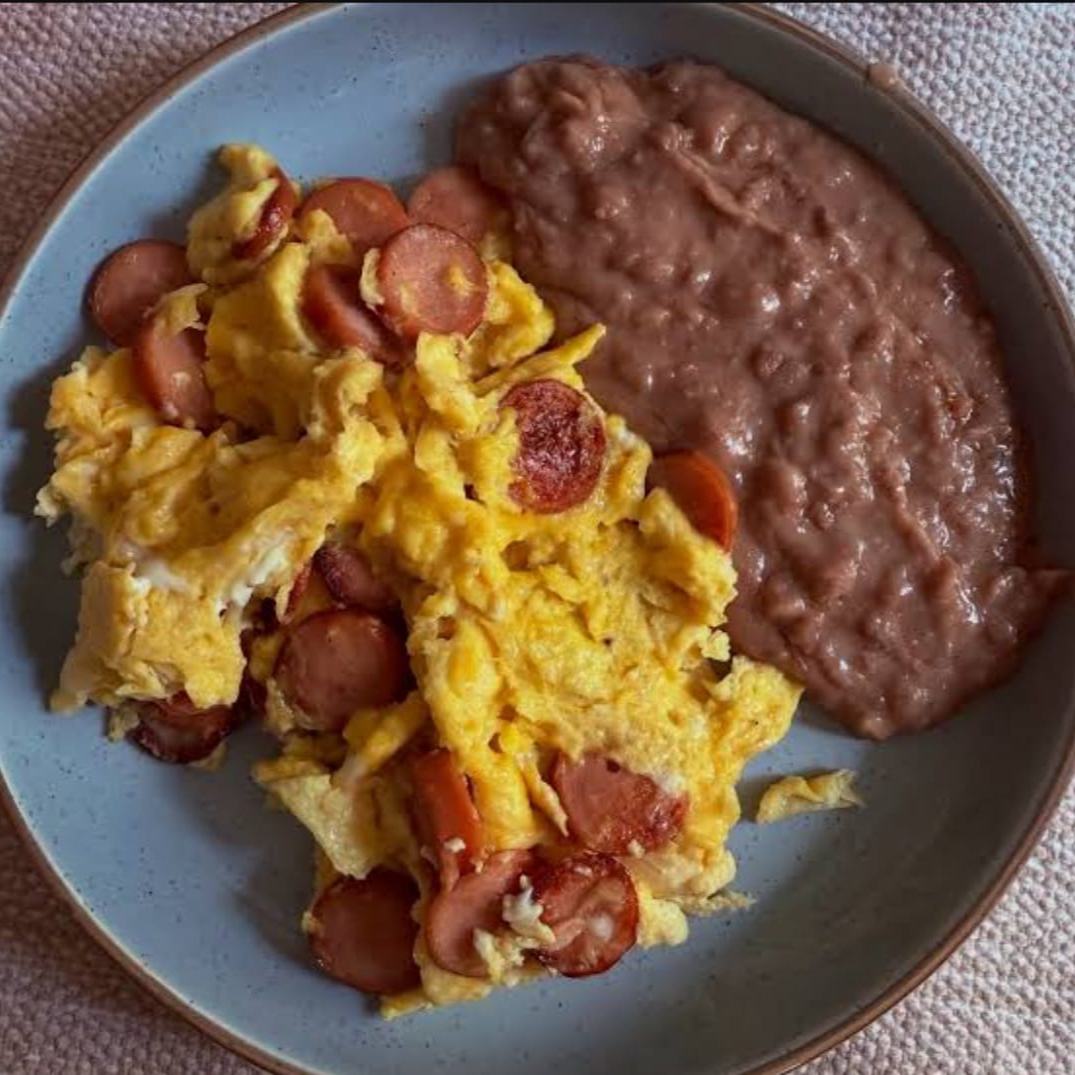 Huevo salchicha frjoles y chilakkiles
