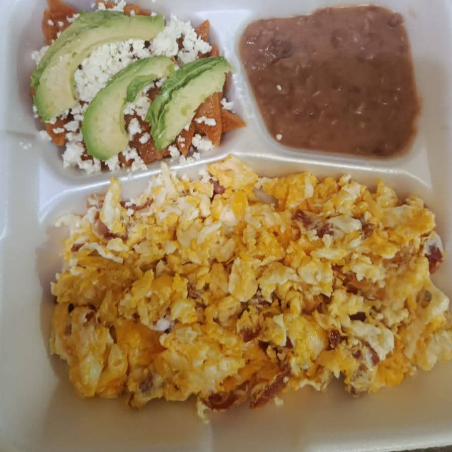 Huevos tocino frijoles chilakkiles