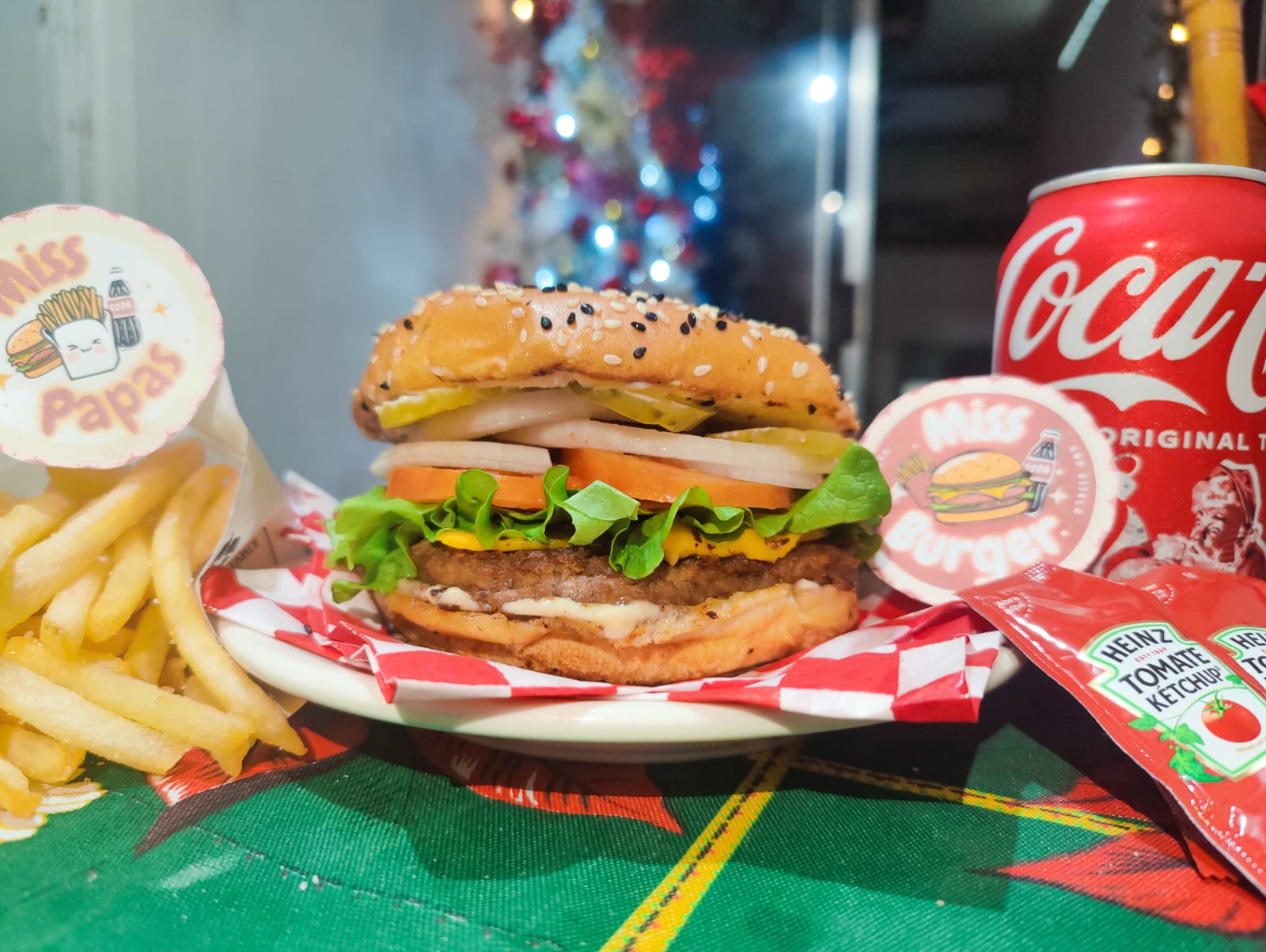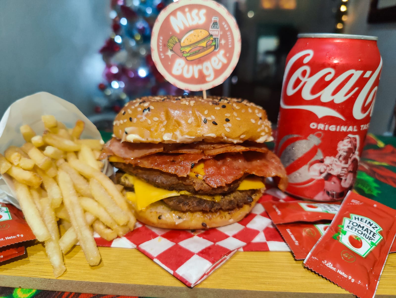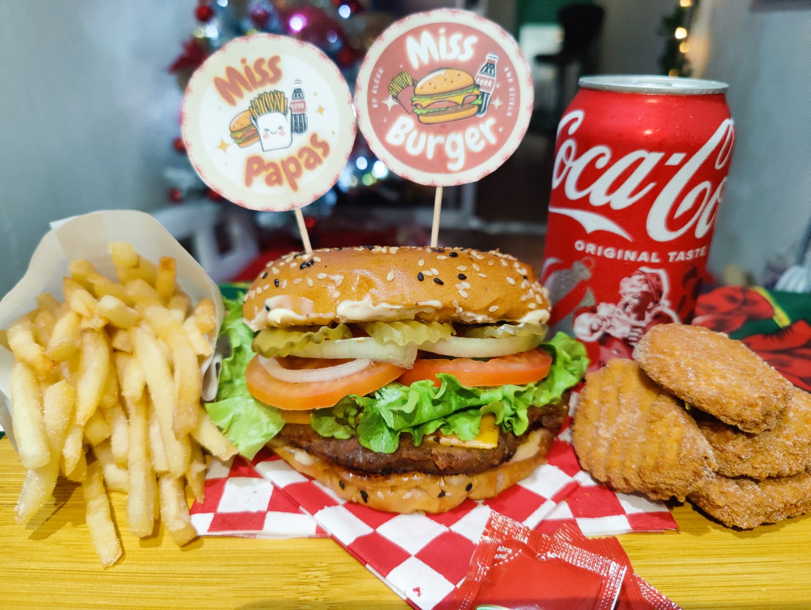 Miss Burger clásica con papas, refresco y 10 nuggets <3