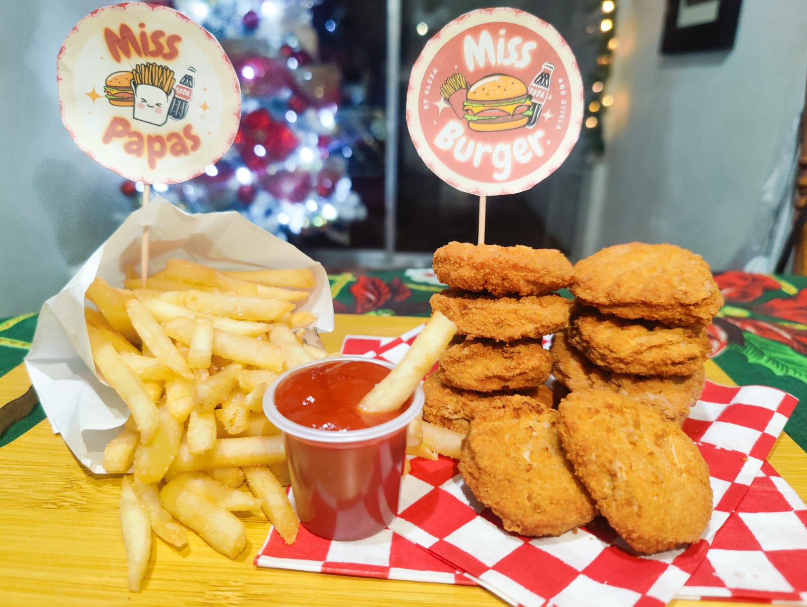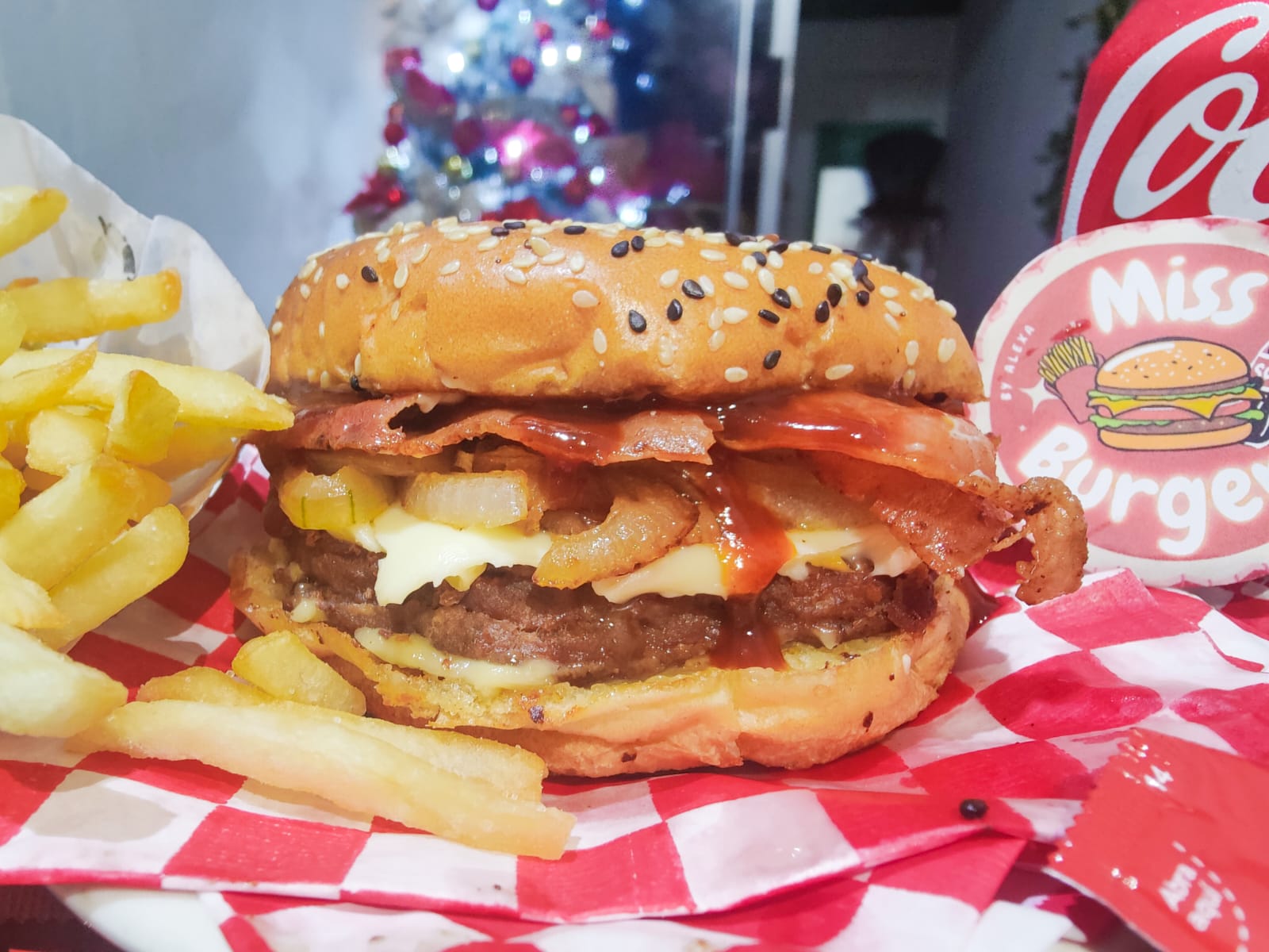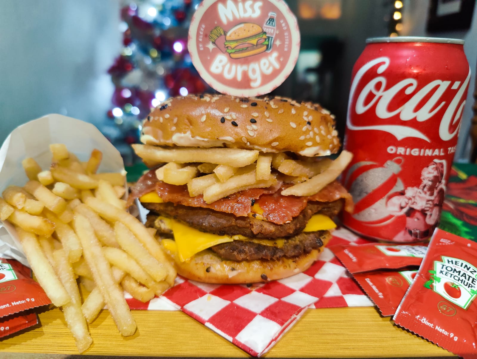 Miss Burger clásica con papas, refresco y 10 nuggets <3