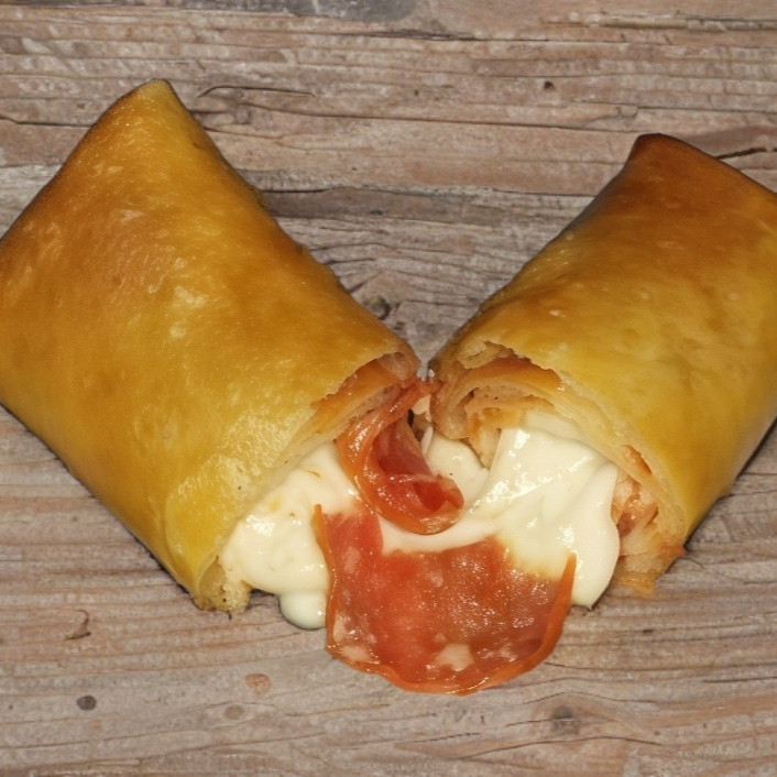 relleno con salsa de tomate, pepperoni y queso blanco