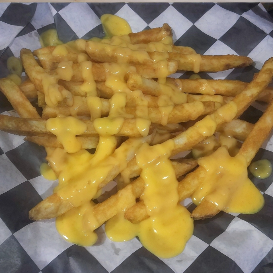 papas fritas de 100 gramos aprox, corte recto, sazonadas, vasito de queso cheddar (2 onzas).