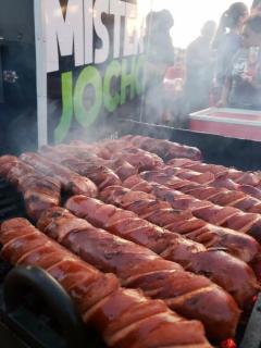 Jocho de 20 cm 100% al carbón, lleva salchicha polaca, mayonesa, catsup, mostaza, tomate, cebolla, aderezo chipotle, tocino, ruffles, jalapeño en vinagre o chile toreado.