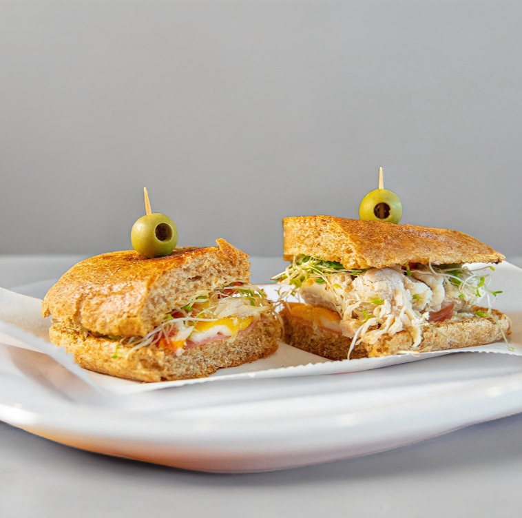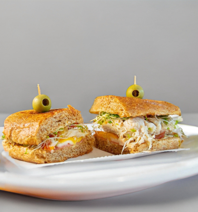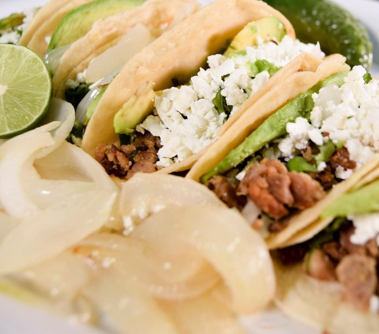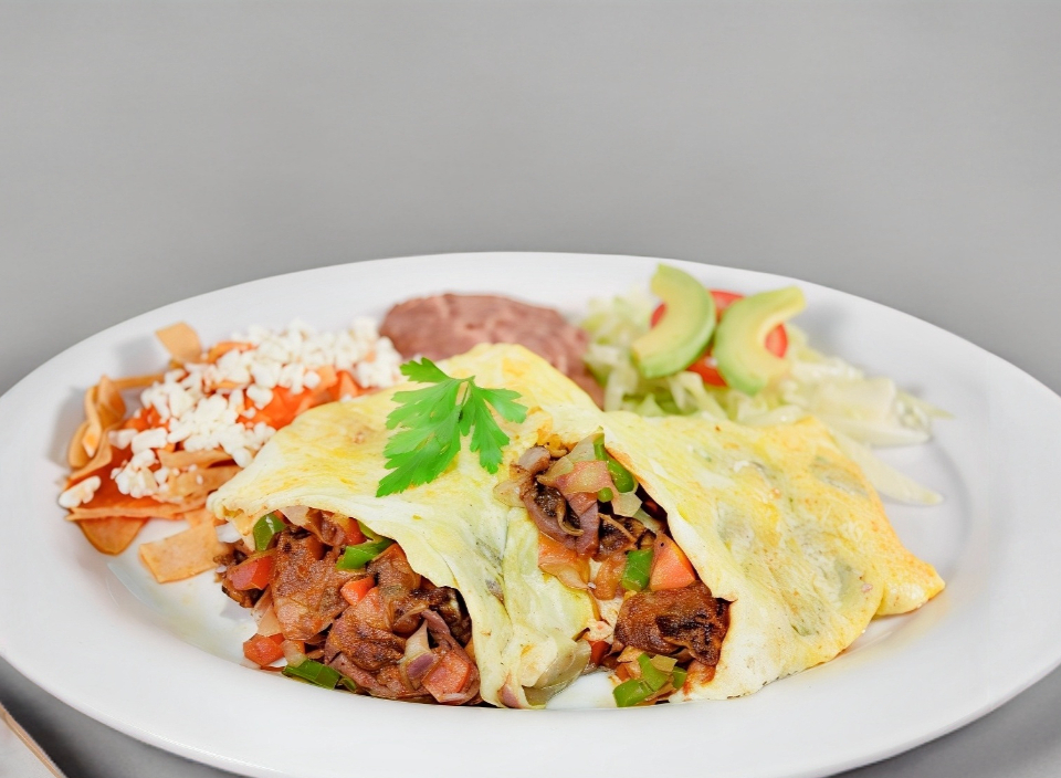 Taco con pechugas, jamón, queso blanco o queso amarillo, aguacate, tomate y queso parmesano.