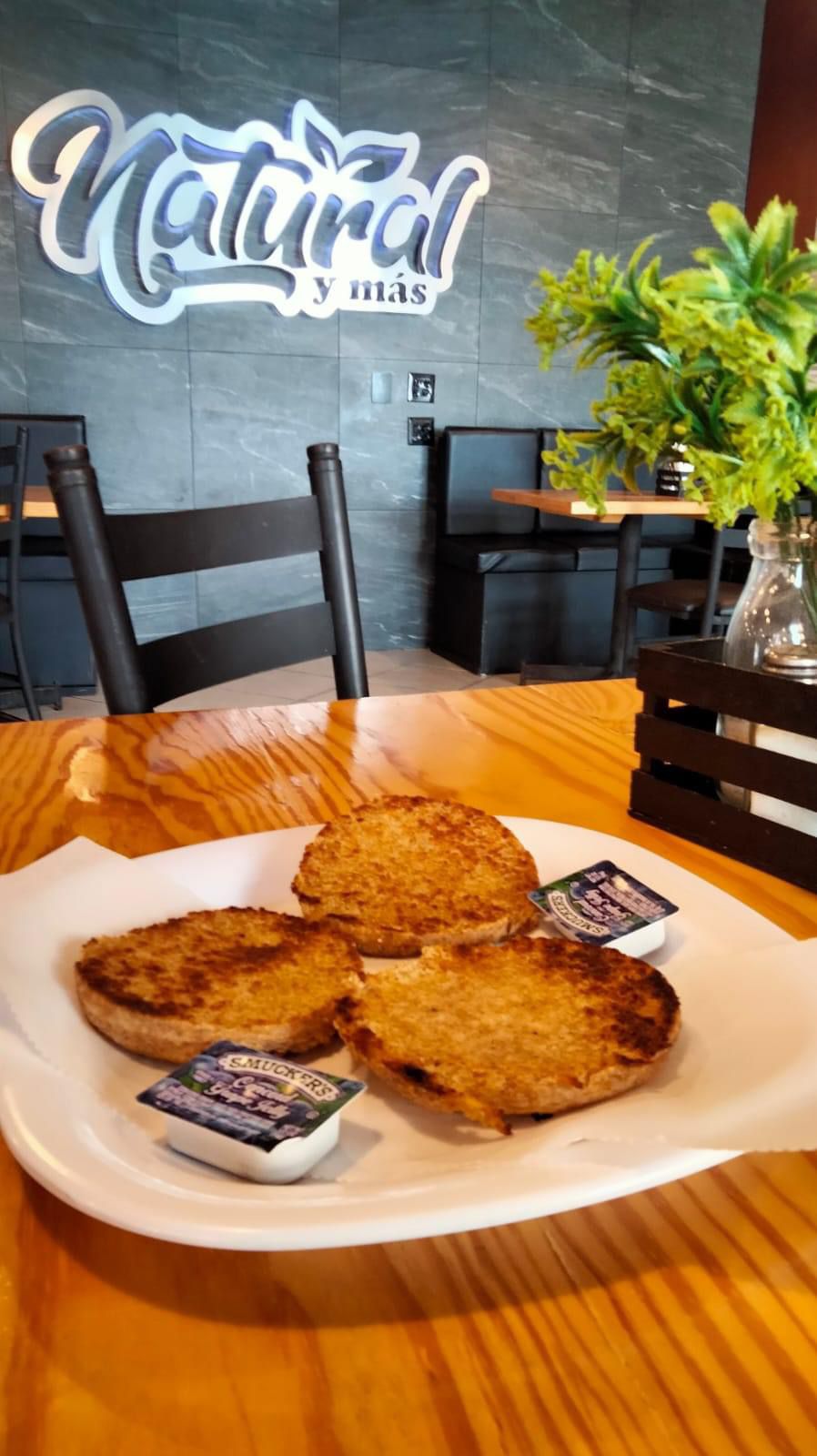 Pechuga a la plancha, salsa de la casa, chile morrón, cebolla, germinado de soya.