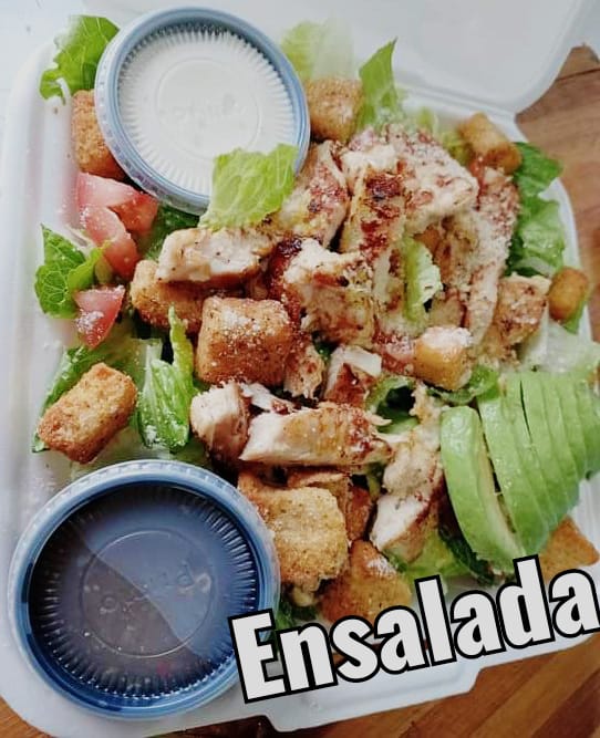 Pechuga a la plancha, lechuga italiana, tomate, croutones, queso parmesano, aguacate y aderezo ranch